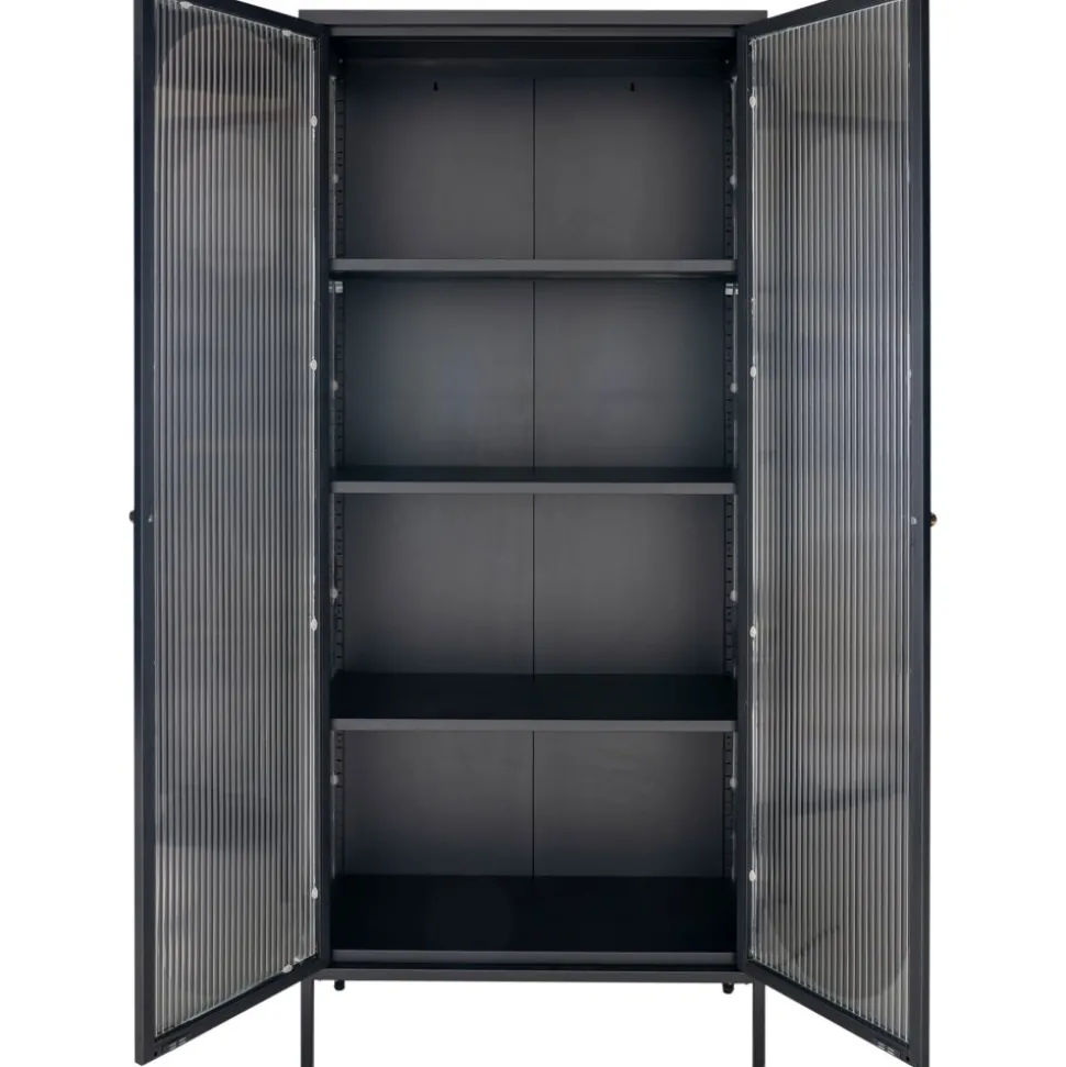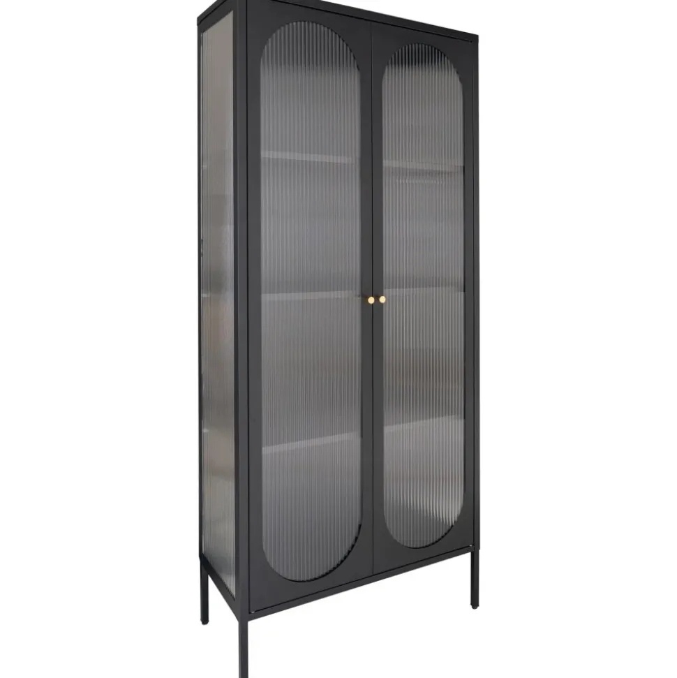 Vitrinskåp av stål och glas. Viss montering krävs.