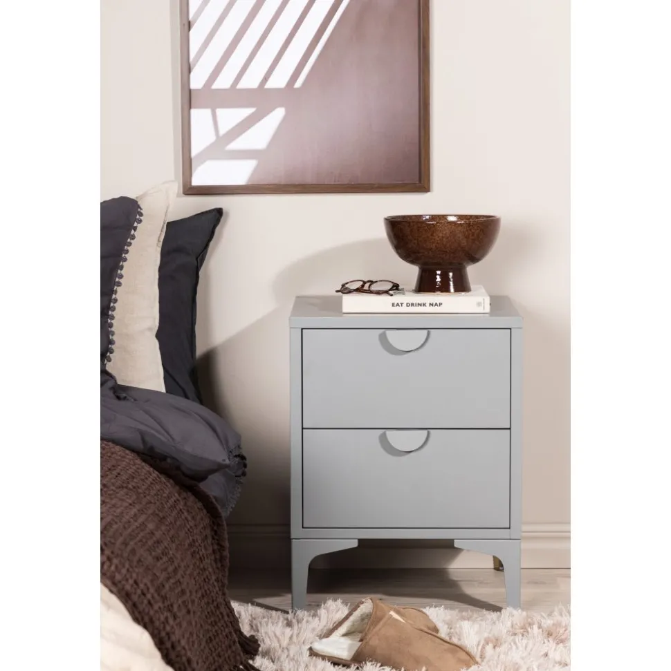 Sängbord i serien Alexander är perfekt som förvaringslösning. Det kvadratiska sidobordet i grått stål har två lådor för dold förvaring och stilren ovansida med lagom plats för en sänglampa, en bra bok och eventuell prydlig inredningsdetalj för modern look. Sängbordet lyfts upp av fyra ben som ger en luftigare känsla och den raka designen gör bordet lättplacerat och enkel att matcha. Se våra bilder för inspiration.