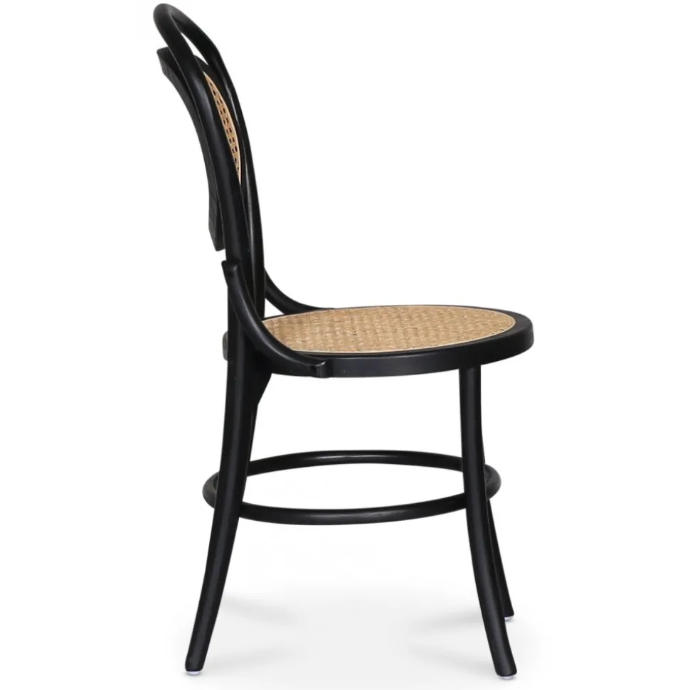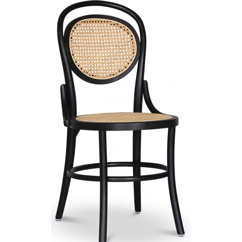 Alicia stolen är en vacker och funktionell möbel som kombinerar tidlös elegans med modern design. Tillverkad av böjträ i massiv bok och med en stilren svart stomme, utstrålar den både hållbarhet och smakfullhet. Sitsen och ryggstödet är klädda i naturfärgad rotting, vilket ger stolen en varm och inbjudande känsla.