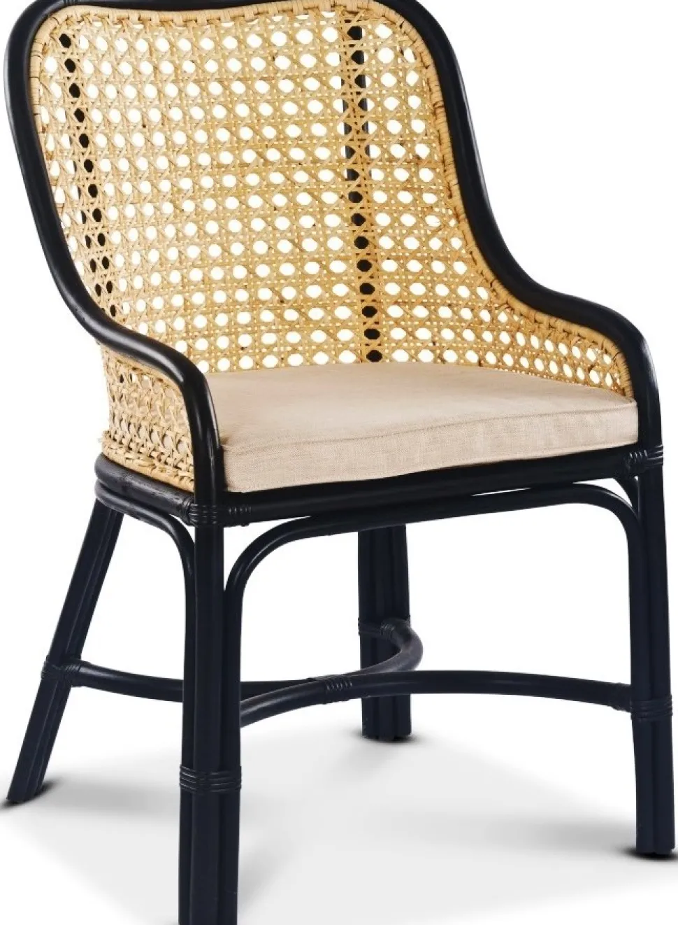 Stol med stomme av svart rotting, naturfärgad rotting i ryggen, bekväm matchande sittdyna ingår. En både rejäl och stilig som passar utmärkt både till matgruppen och som komplement till inredningen.