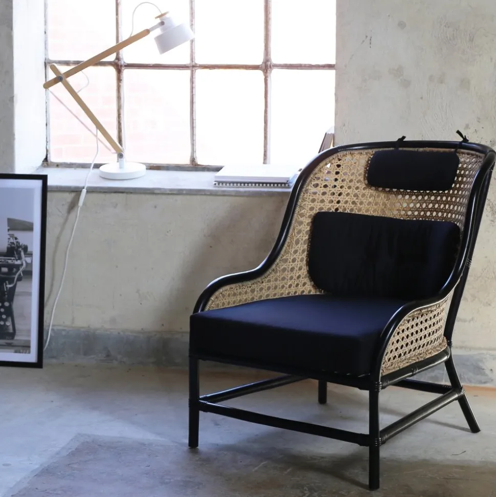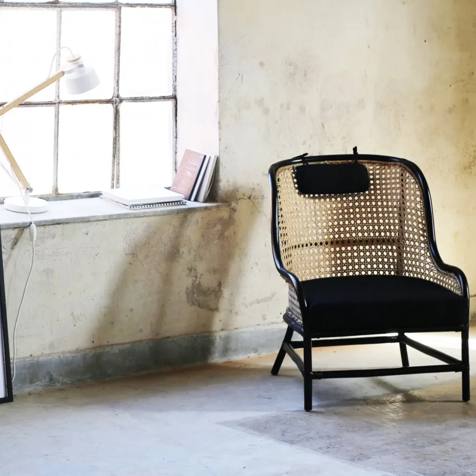 - Anton svart fåtölj i rotting