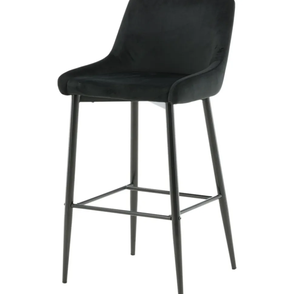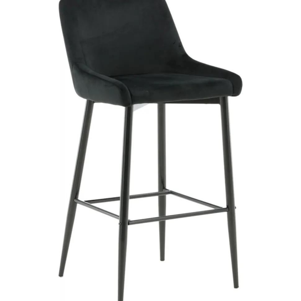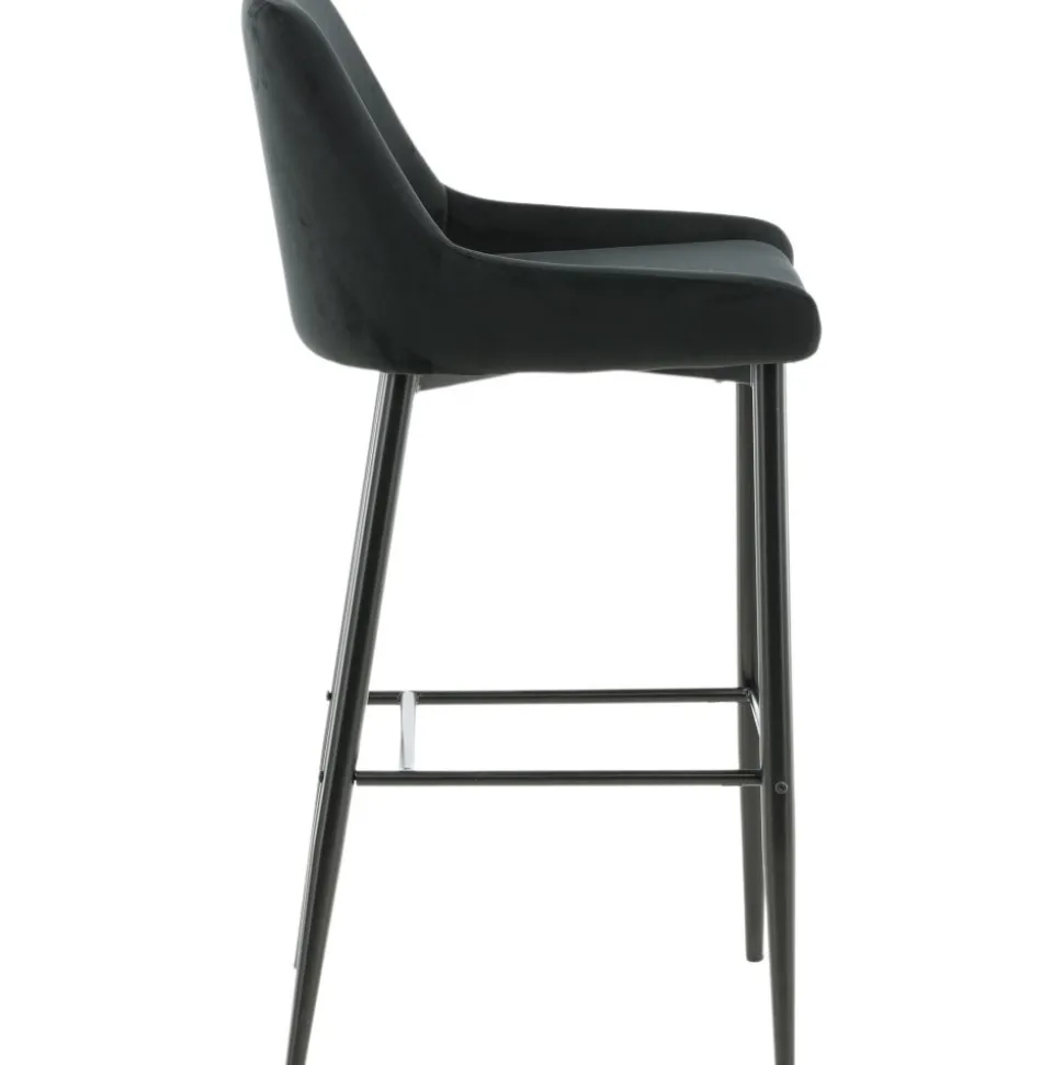 Barstol av järn och plywood, klädd med polyestertyg.