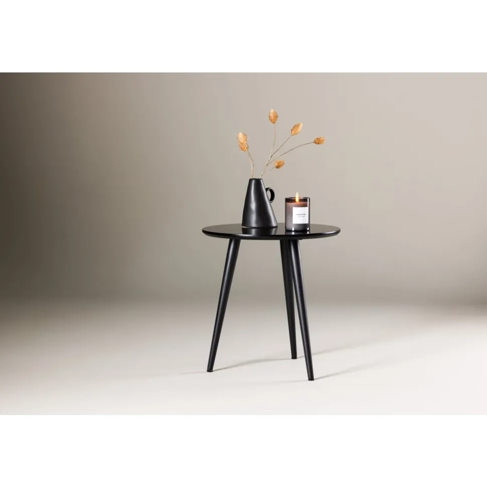 Utforska minimalistisk elegans med sidobordet Askim. Detta iögonfallande svarta är tillverkat av MDF för bordsskivan och stål för benen, vilket ger en genomtänkt design. Med en diameter på 48 cm och en höjd på 50 cm är Askim sidobordet perfekt för att komplettera din inredning med stil och funktionalitet. Den minimalistiska estetiken gör Askim till en elegant inredningsdetalj som drar uppmärksamhet till sig. Oavsett om det används för att placera böcker, blommor eller andra dekorativa föremål, kommer Askim sidobordet att lägga till en touch av raffinerad skönhet i ditt rum. Skapa en stilfull atmosfär i ditt hem med det iögonfallande och eleganta sidobordet Askim.