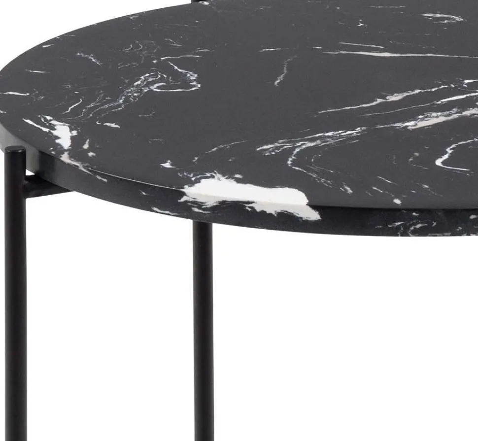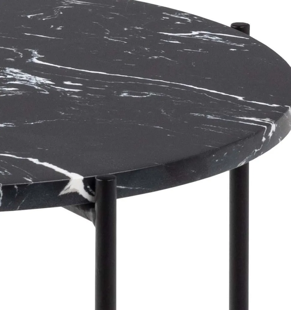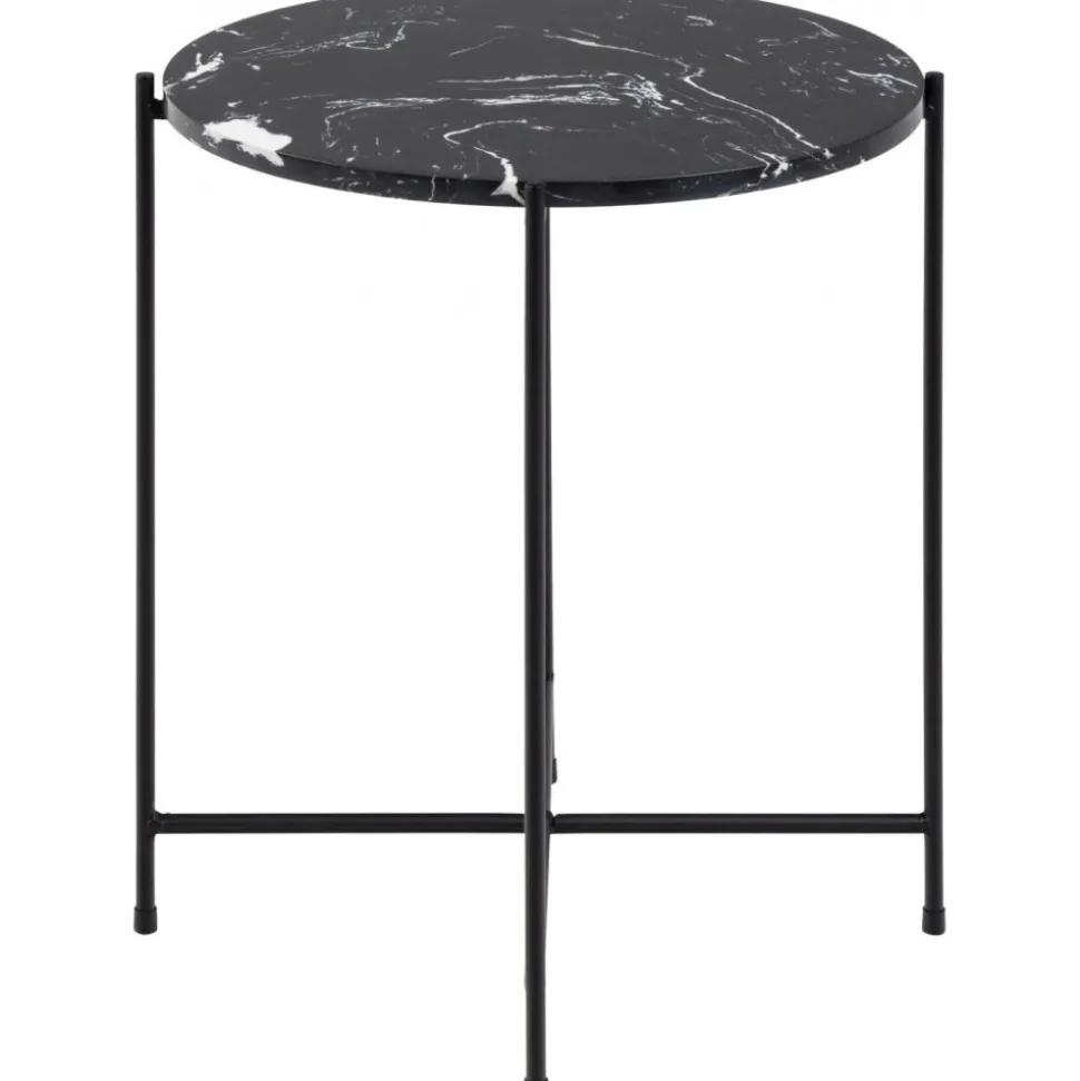 Sidobord med bordsskiva av konstgjord marmor och underrede av pulverlackerad stål.