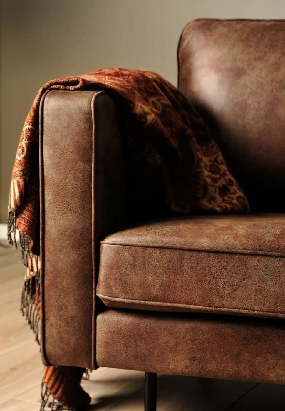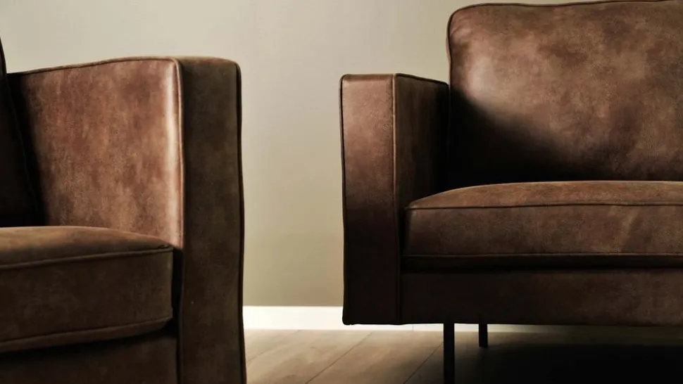 En lyxig med en elegant och modern design. Klädd med ett härligt mörkbrunt microfiber tyg för maximal komfort. Benen är av metall.