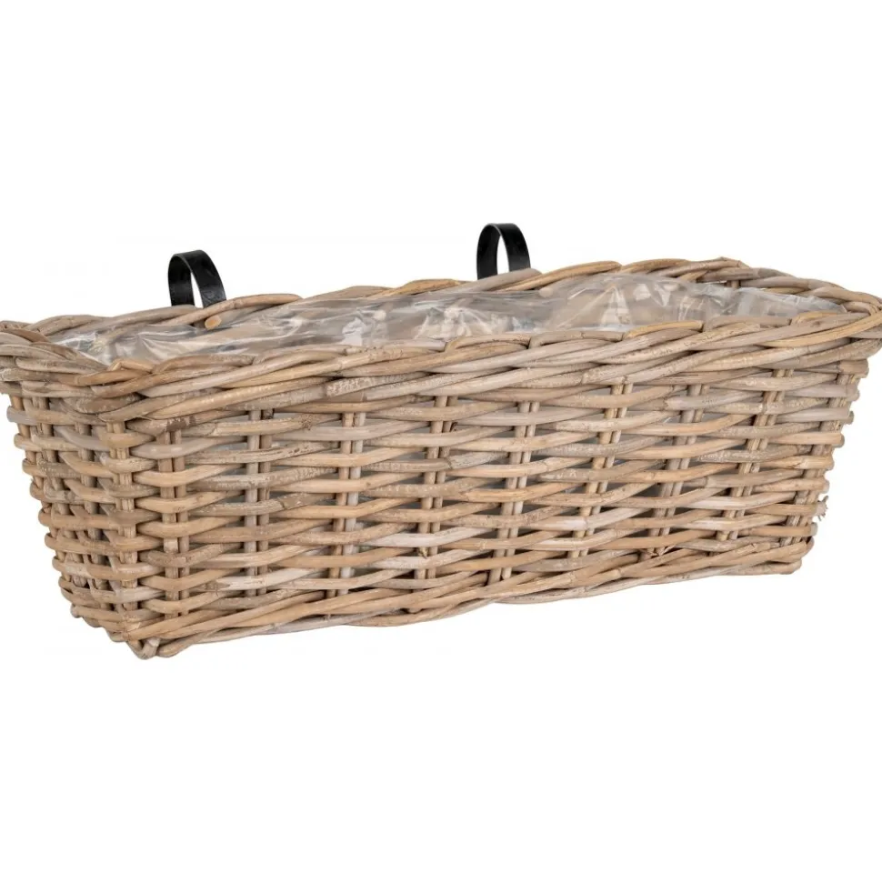 Balkonglåda av kuburotting med innerklädsel av plast.