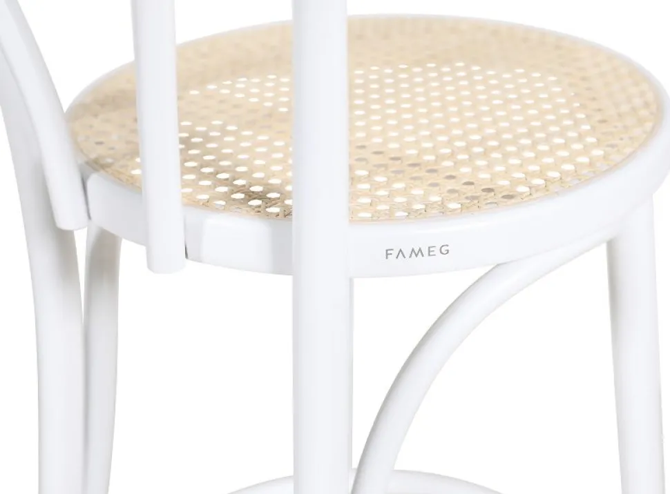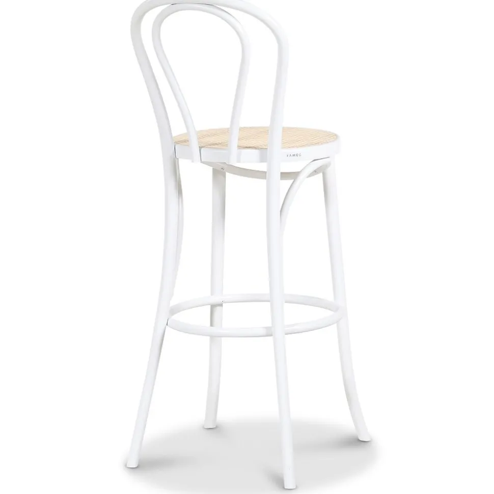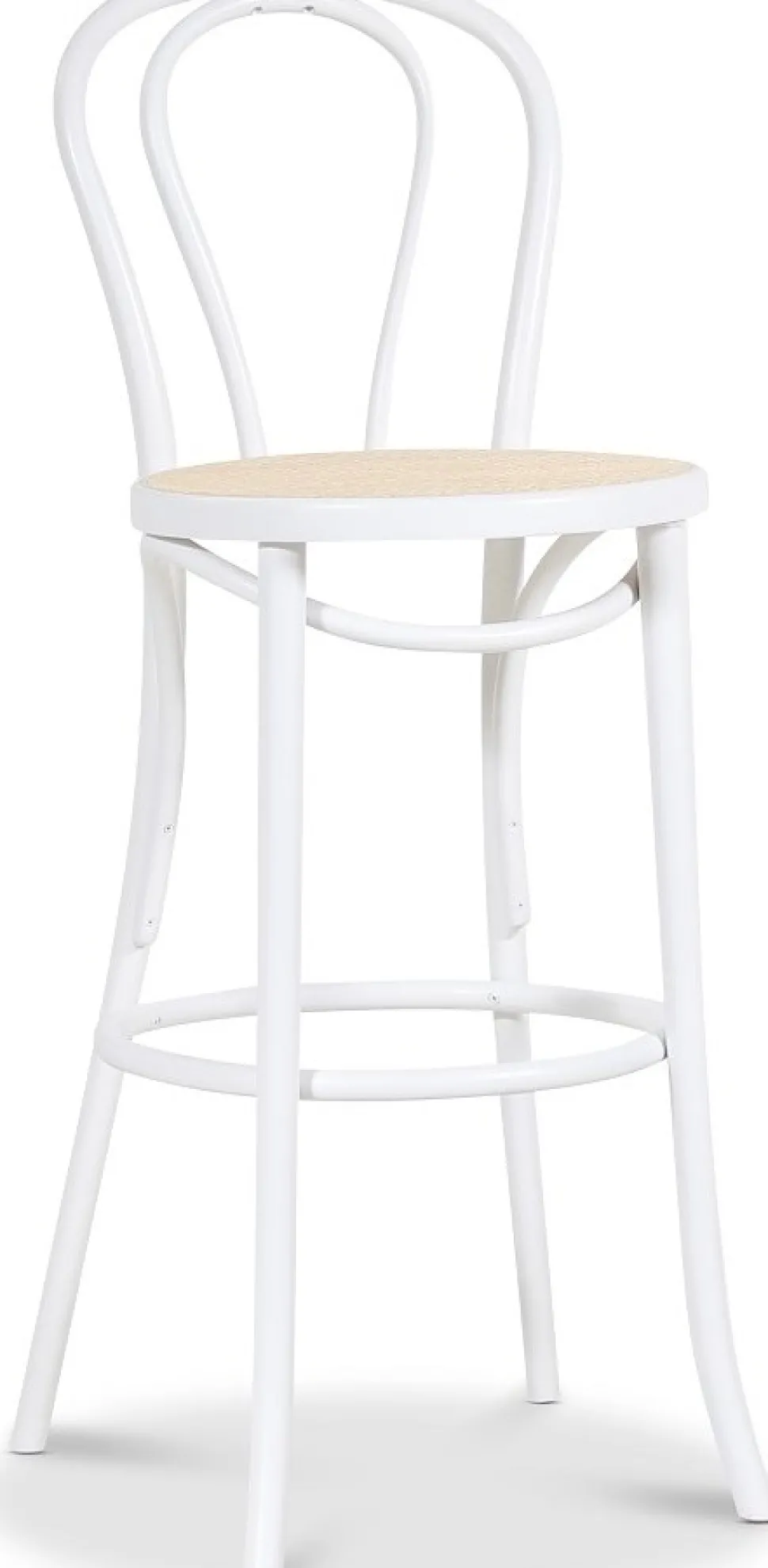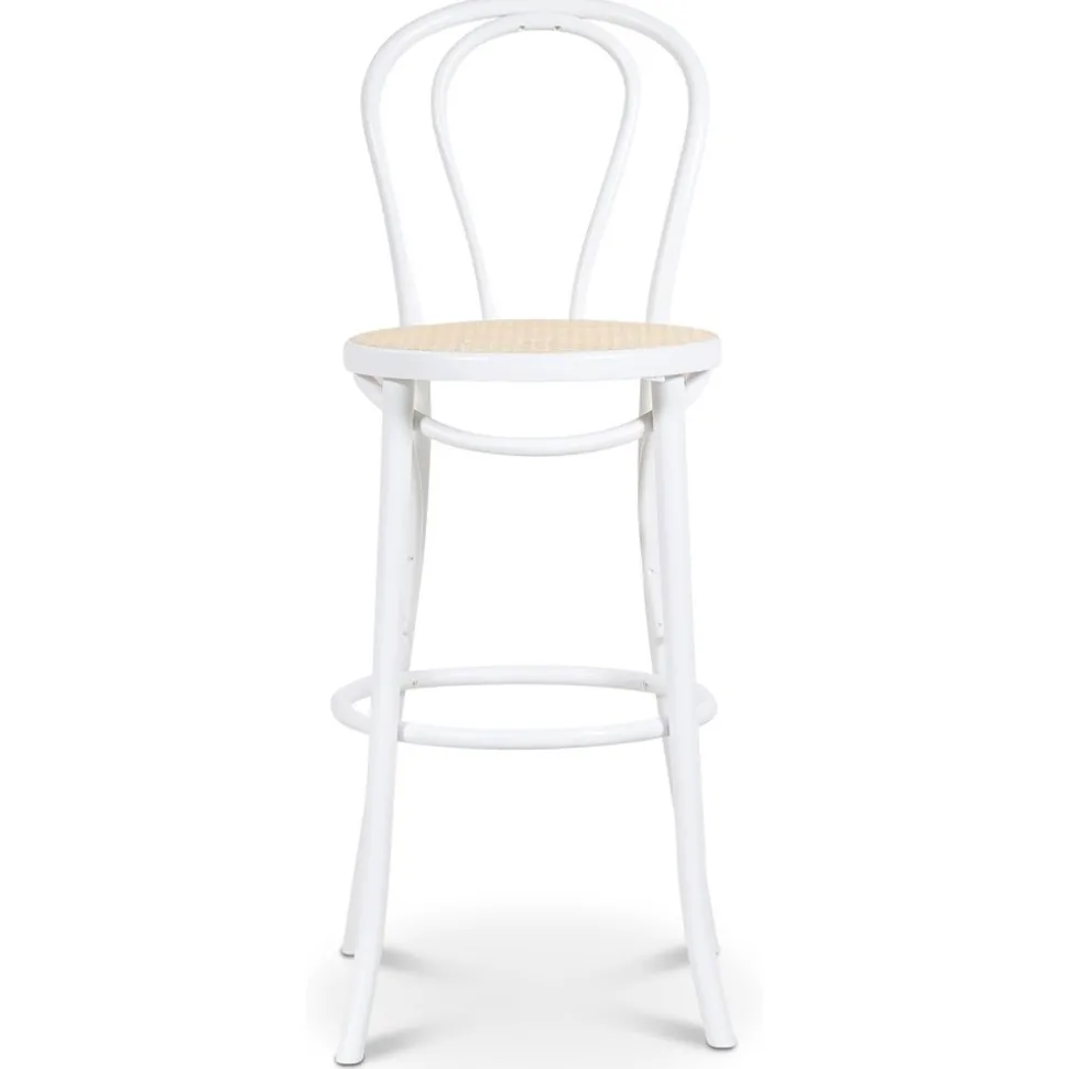 En av de mest klassiska barstolarna i böjträ. Formgiven av Michael Thonet för över 150 år sedan. Stolen har en sits av naturrotting medans stommen är i vitlackat böjträ.