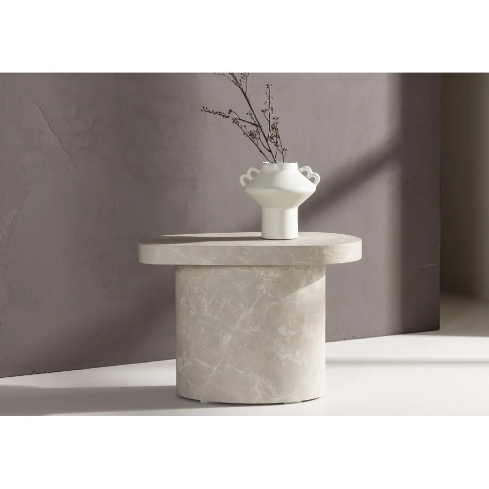 Upptäck den subtila elegansen hos vårt Båstad. Med dess kompakta mått på 30×50 cm är detta sidobord det perfekta tillskottet till ditt hem, oavsett om det används som en praktisk yta bredvid din soffa eller som ett elegant tillägg till din inredning. Båstad-sidobordet har en modern design med en bordskiva i ljusgrå betongfinish, vilket ger en sofistikerad och samtida känsla till rummet. Tillverkat av MDF-material erbjuder detta sidobord stabilitet för daglig användning. Den smidiga storleken gör det enkelt att placera sidobordet i olika utrymmen, vilket gör det perfekt för att hålla din bok, kopp kaffe eller andra vardagsföremål nära till hands. Med sin stilrena design och mångsidiga användningsområden blir Båstad-sidobordet en funktionell och attraktiv del av din heminredning. Ge ditt hem den moderna touch det förtjänar med sidobordet Båstad.