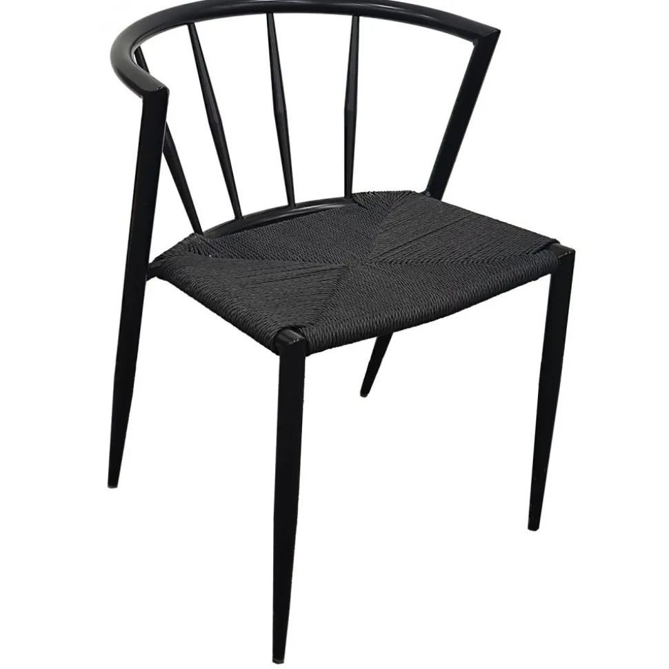 Bella utestol i svartlackad metallstomme med svart repsits. Fräck design som påminner om inomhus.