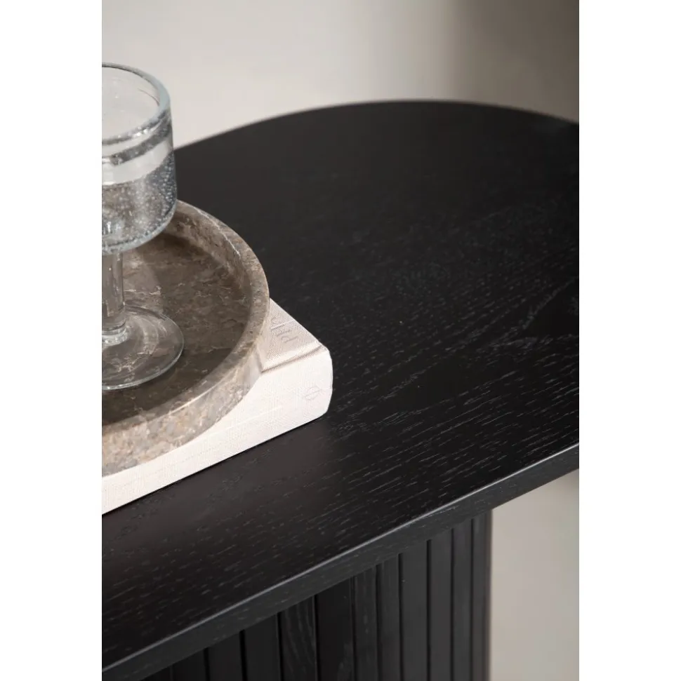 Ge vardagsrummet eller hallen ett modernt lyft med det här läckra avlastningsbordet. Bordet är genomgående tillverkat av MDF med faner i en svartputsad finish och har en robust stomme med två cylinderformade ben i ribbad design. Den genomtänkta helheten med mjuka nordiska former skapar en varm och modern känsla till rummet. Bordet är lika snyggt som praktiskt och helt i linje med trenderna – ett perfekt tillskott till hemmet!
