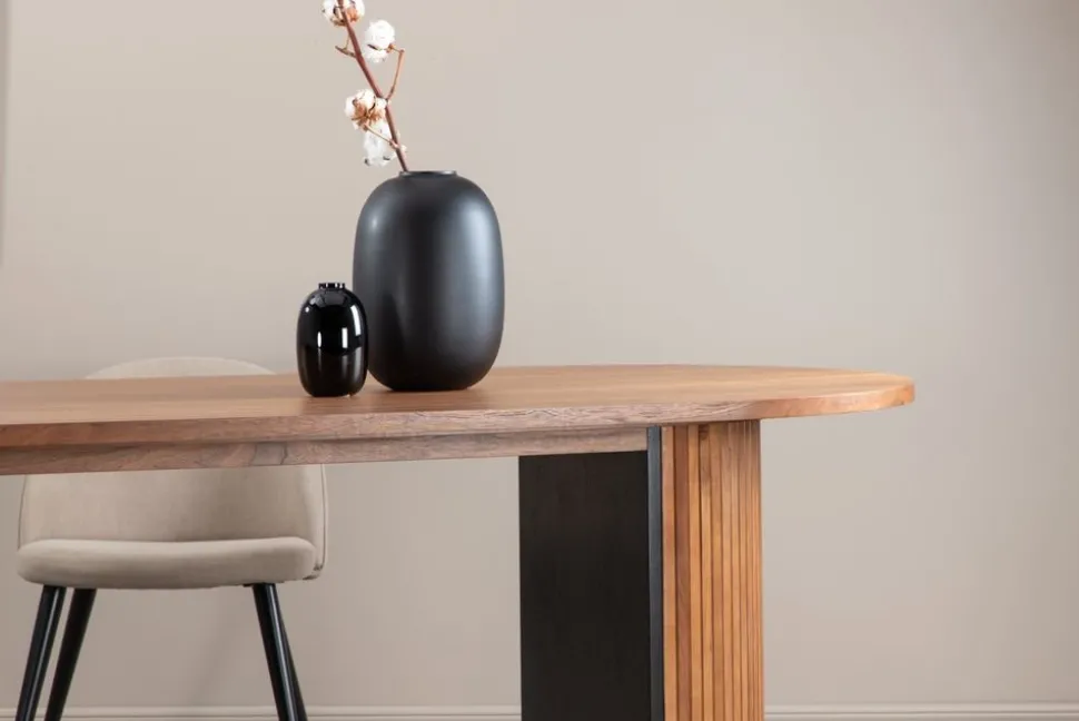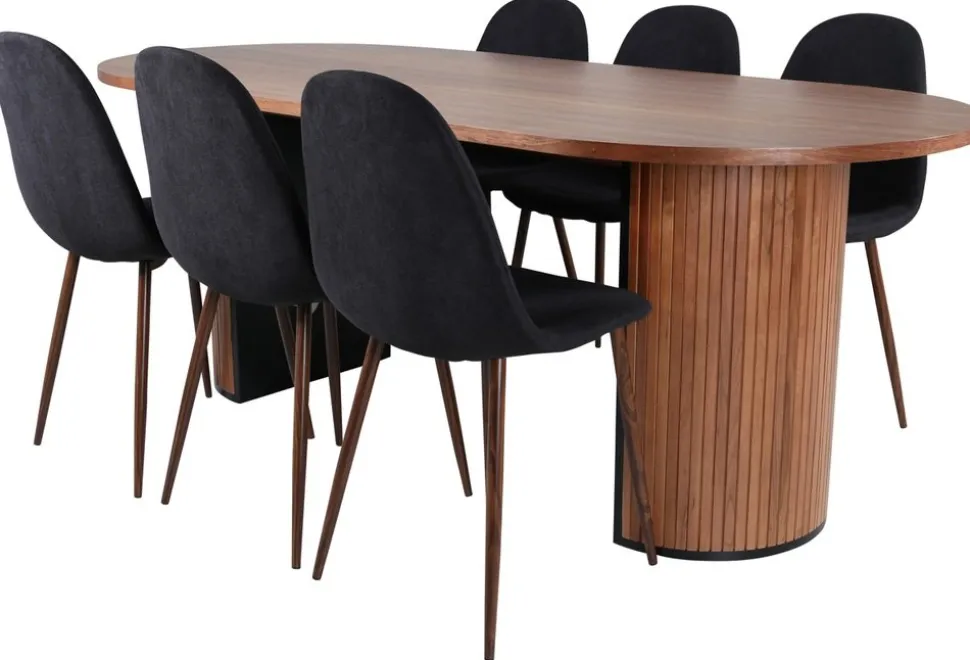 Matbord med en modern design. Tillverkat i solid trä och MDF, med vacker valnöt fanér. ett designat av hög kvalitet.