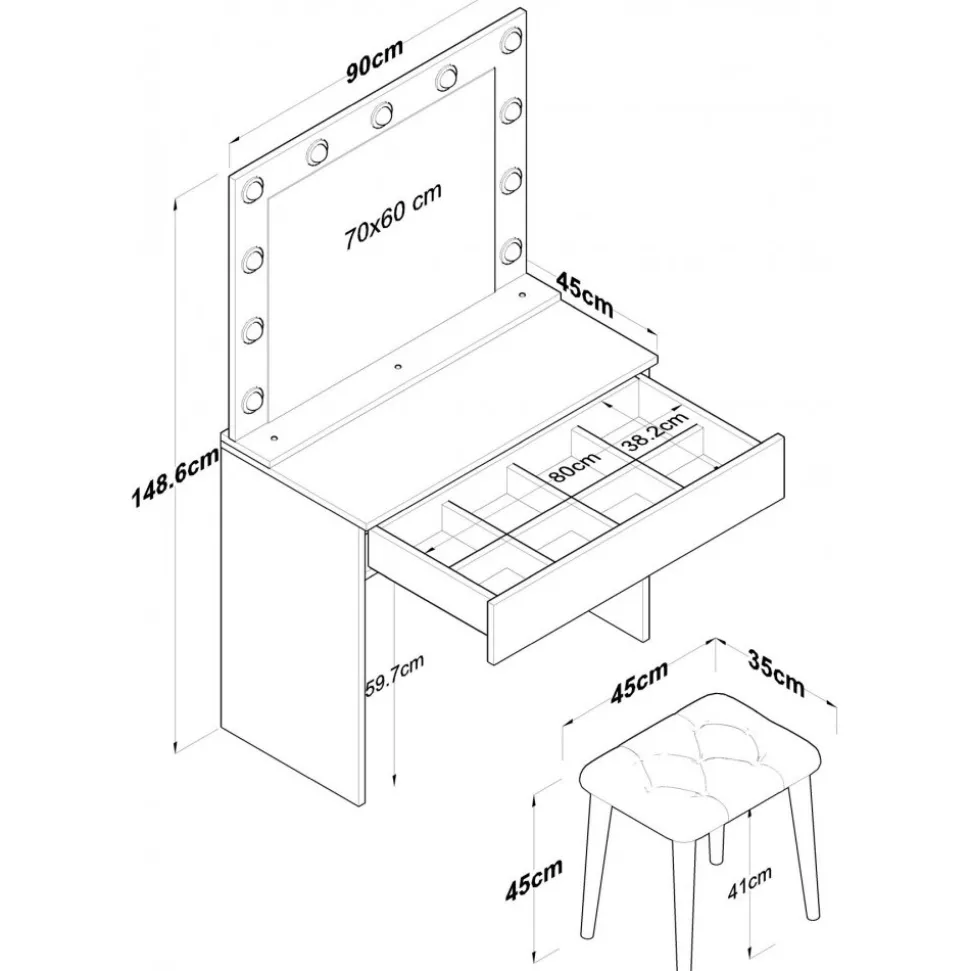 - Material: Melaminbelagd spånskiva/tyg/spegelglas