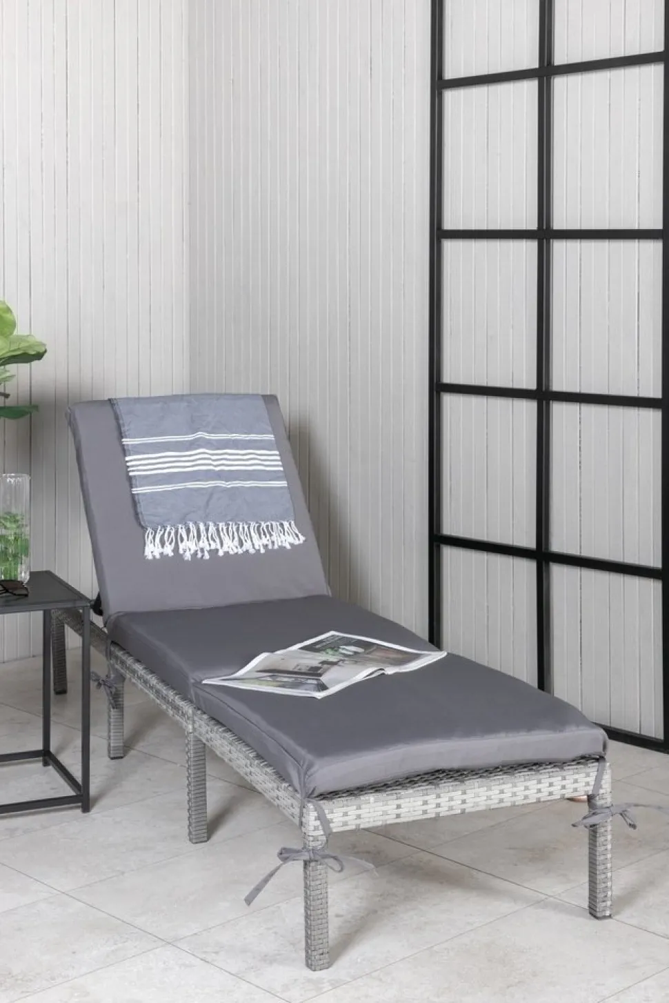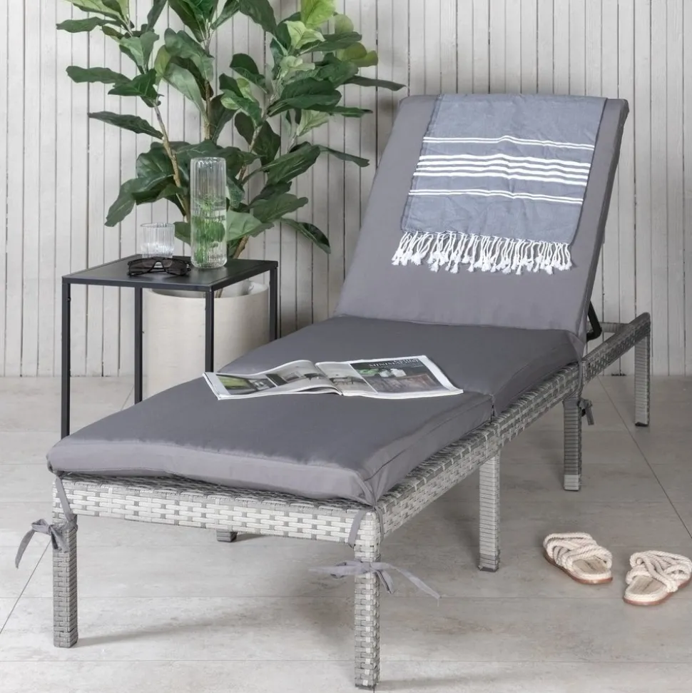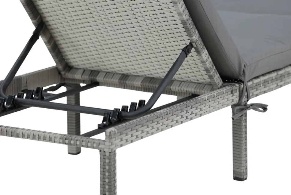 Med Bilbao får du en snygg och bekväm solsäng i grå konstrotting. Stolens ryggdel är justerbar för extra bekvämlighet och en matchande grå solsängsdyna ingår. Den stilrena och nätta designen gör att solsängen enkelt matchas med annan inredning och passar även på de mindre uteplatserna. Njut av sommarens alla stunder – snyggt och bekvämt!