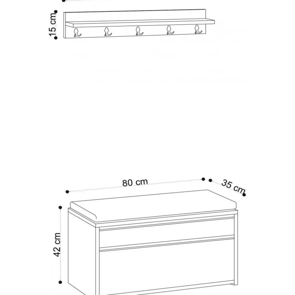 - Hallmöbel: Bredd: 80 cm Höjd: 42 cm Djup: 35 cm