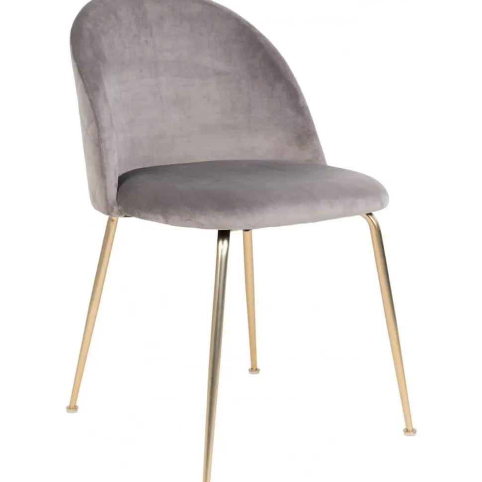 Matgrupp bestående av Bolzano matbord i vitt med guldfärgat underrede och 4 st Geneve matstolar i grått sammetstyg och guldfärgade ben. Levereras omonterad.