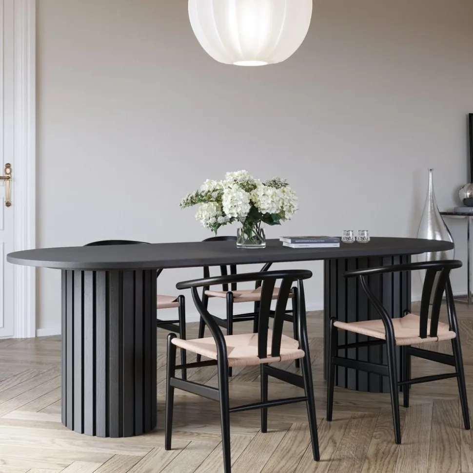 Vår PiPi bordsserie står för hantverk, design och hållbarhet. Vi erbjuder valnöt, whitewash, svartbetsat trä och ek. Serien innehåller olika storlekar och utföranden. Välj just ditt utförande för matplatsen. Denna modellen har en snygg ovalskiva, utförande svartbetsat fanèr.