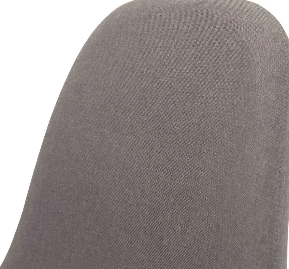 Matstol klädd i grått tyg, 100% polyester. Sits- och rygg är skumstoppade för god komfort. Underrede i vit metall.