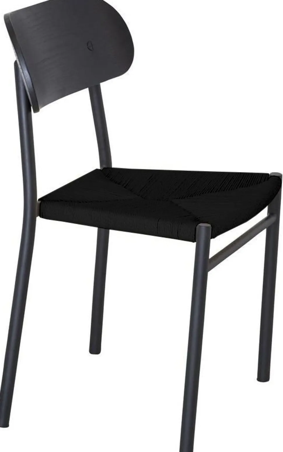 Stol med flätad sits i svart naturfiber. Stomme i svart metall.
