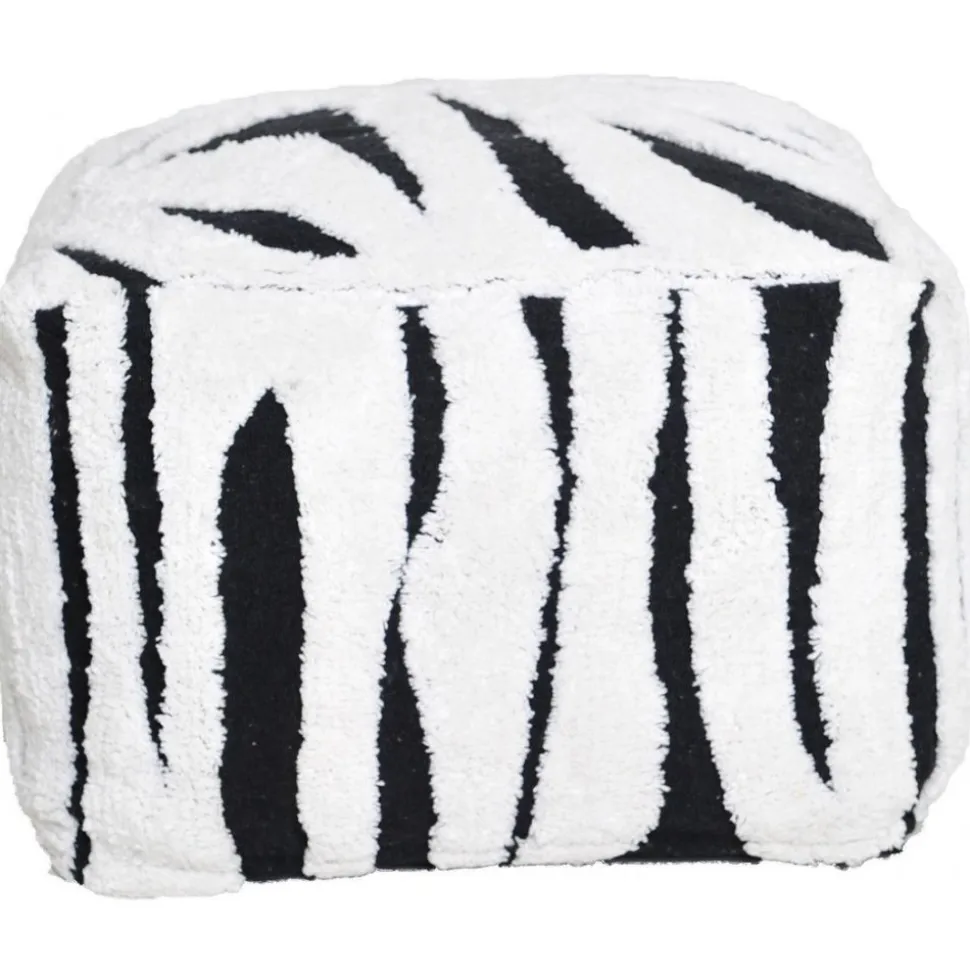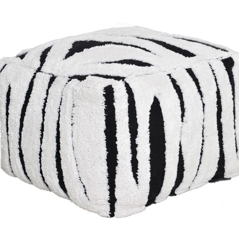 Sittpuff i vitt och svart av polyester med eps fyllning.