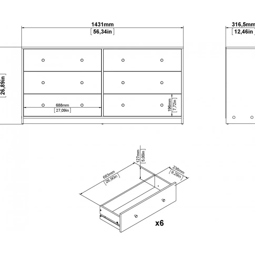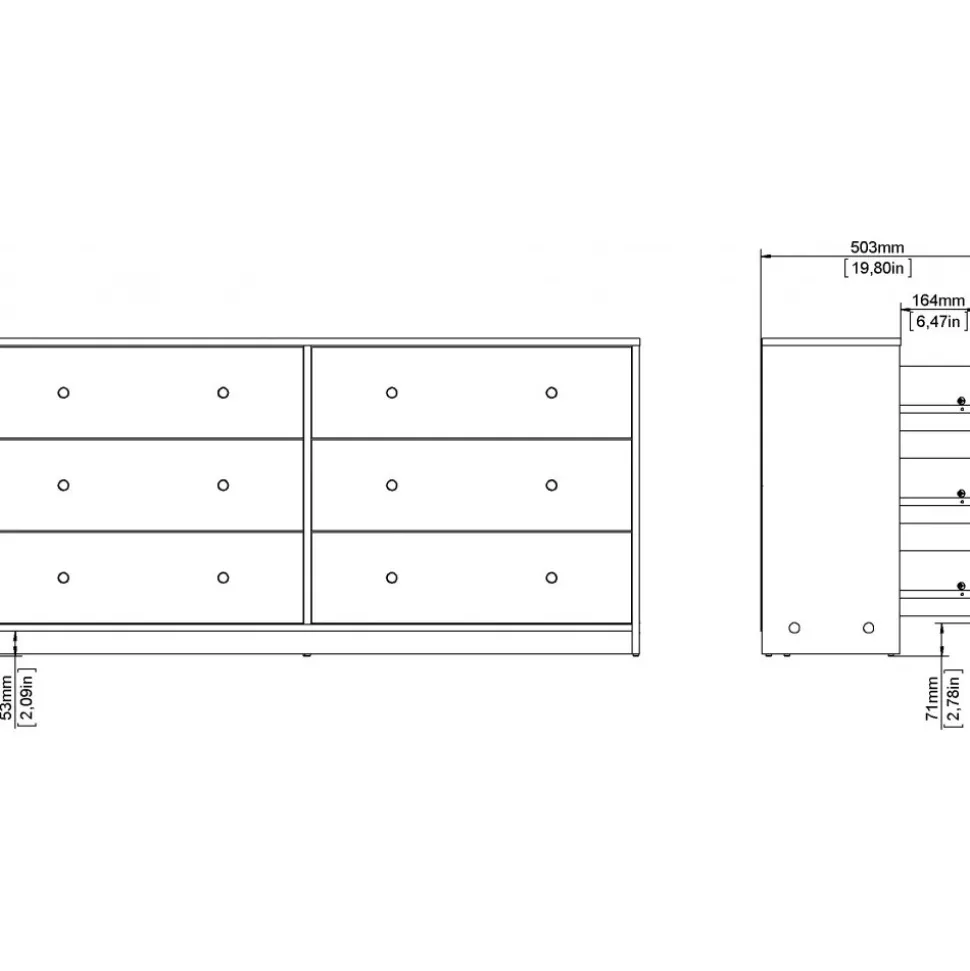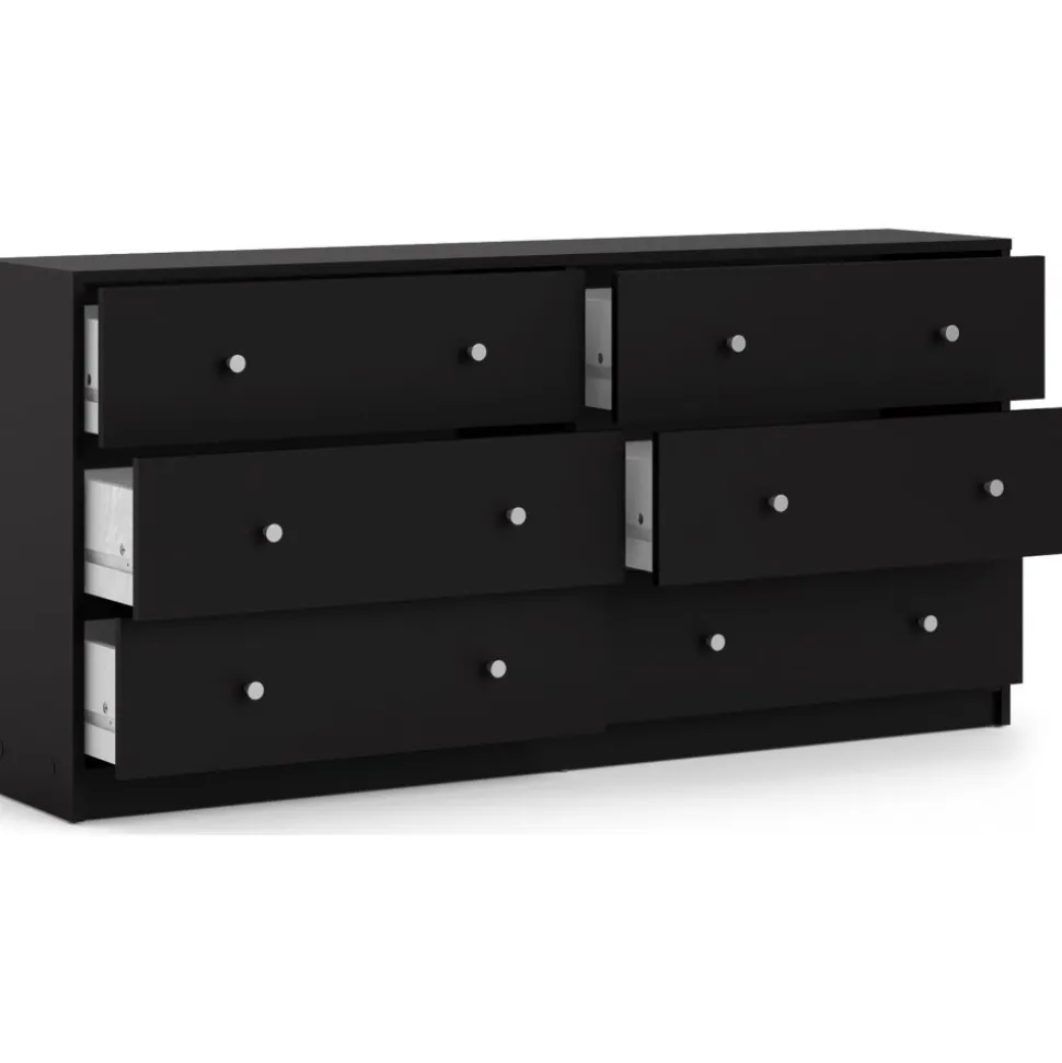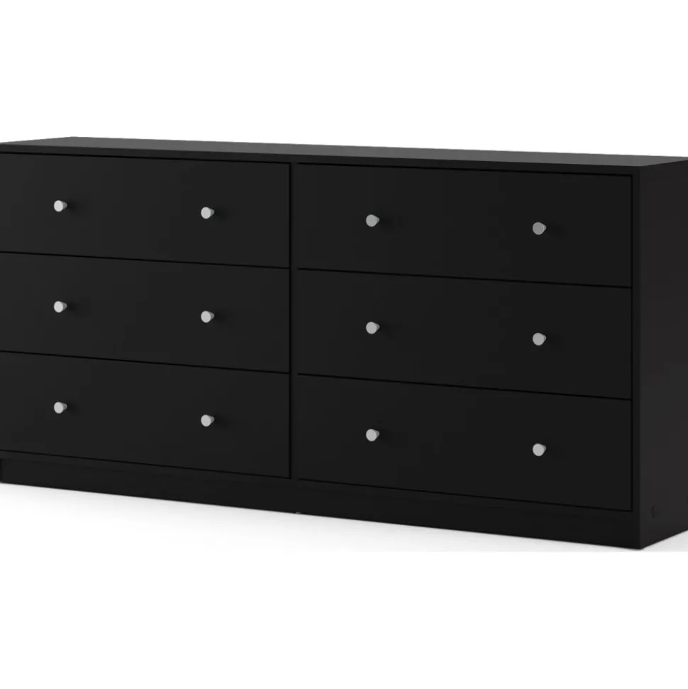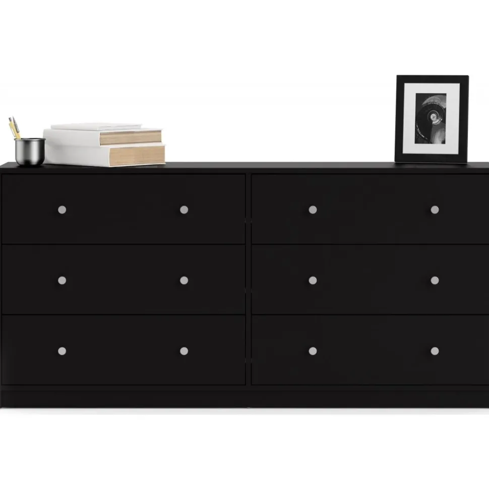 Vår stiliga är tillverkad av trä och har kantband av melamin för ökad hållbarhet. Den erbjuder generös förvaring med flera rymliga lådor, vilket gör den idealisk för kläder och andra föremål. Byrån är lätt att rengöra och motståndskraftig mot slitage, vilket garanterar långvarig användning. Med eleganta handtag och ben i plast får den ett modernt utseende som passar alla inredningsstilar.