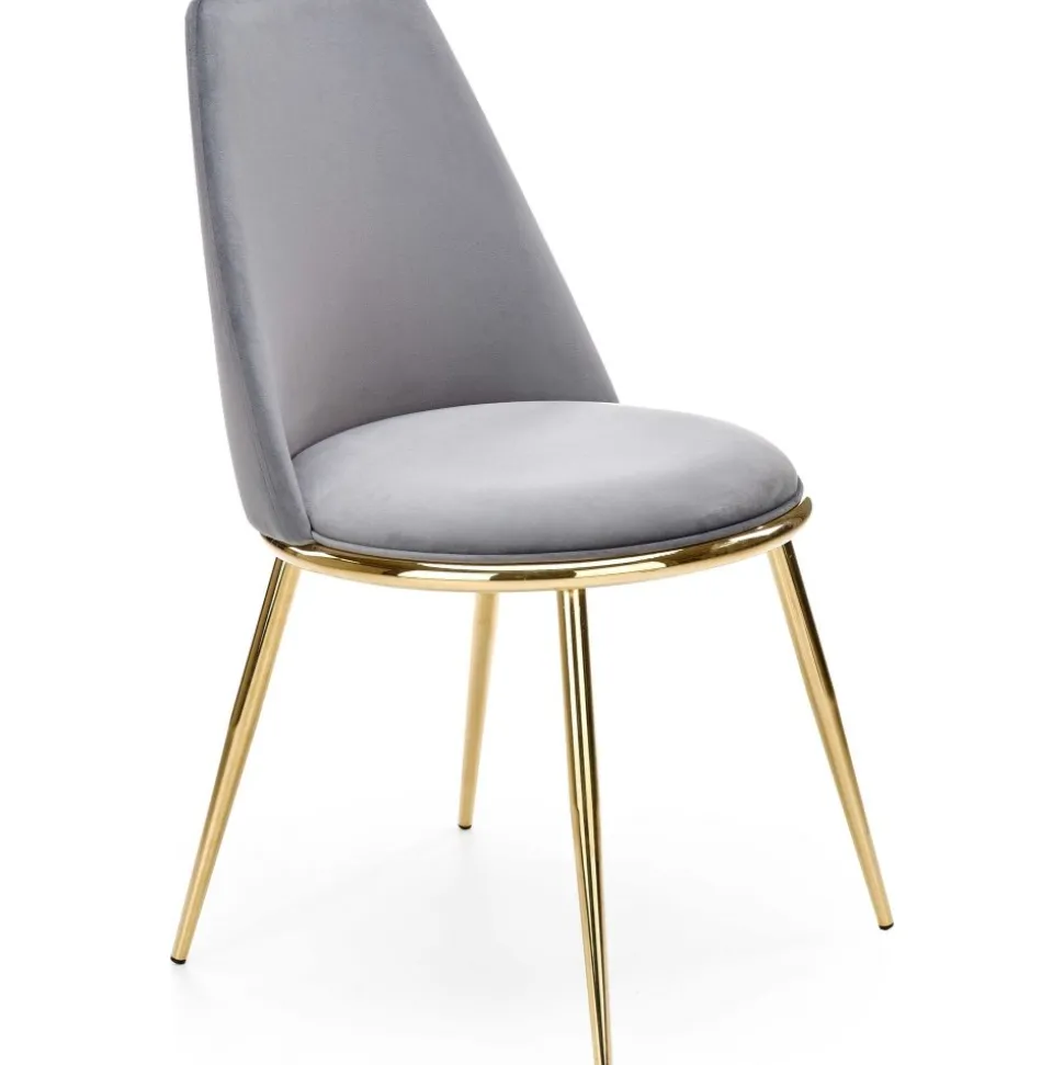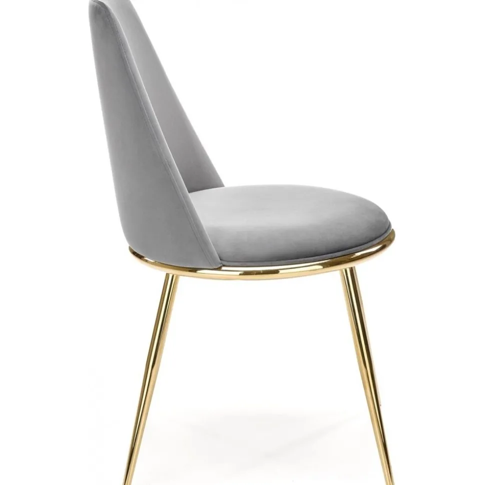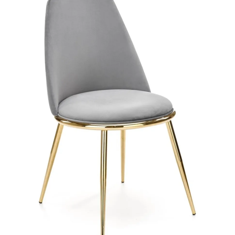 Matstol med klädsel av sammetstyg. Underrede av kromat stål.
