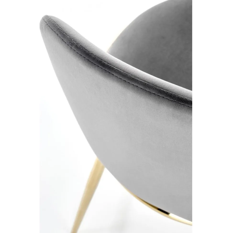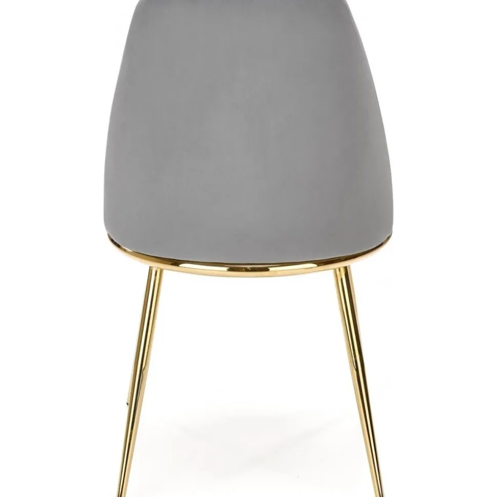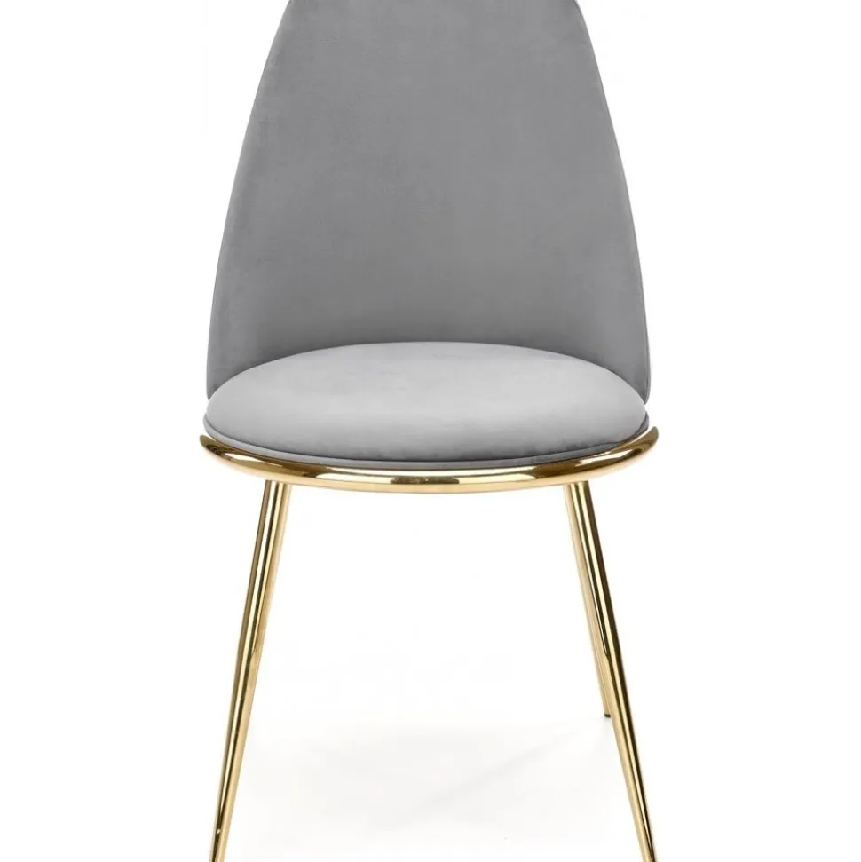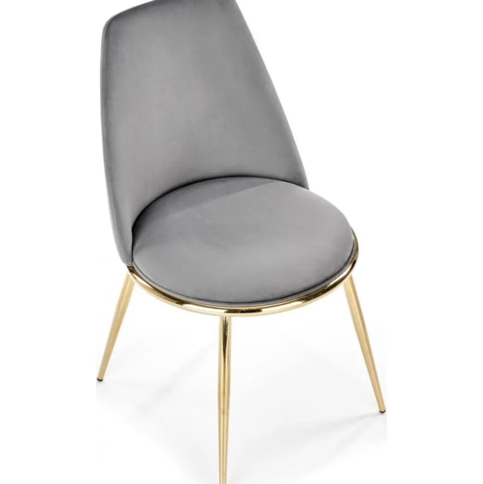 Matstol med klädsel av sammetstyg. Underrede av kromat stål.