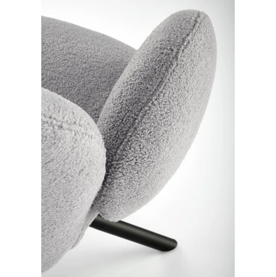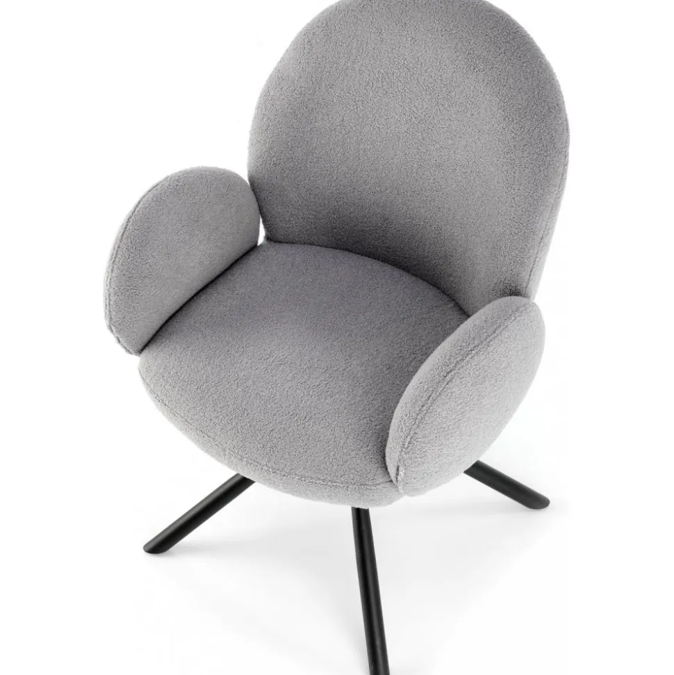 Matstol med underrede av pulverlackerad stål och klädsel av boucletyg.