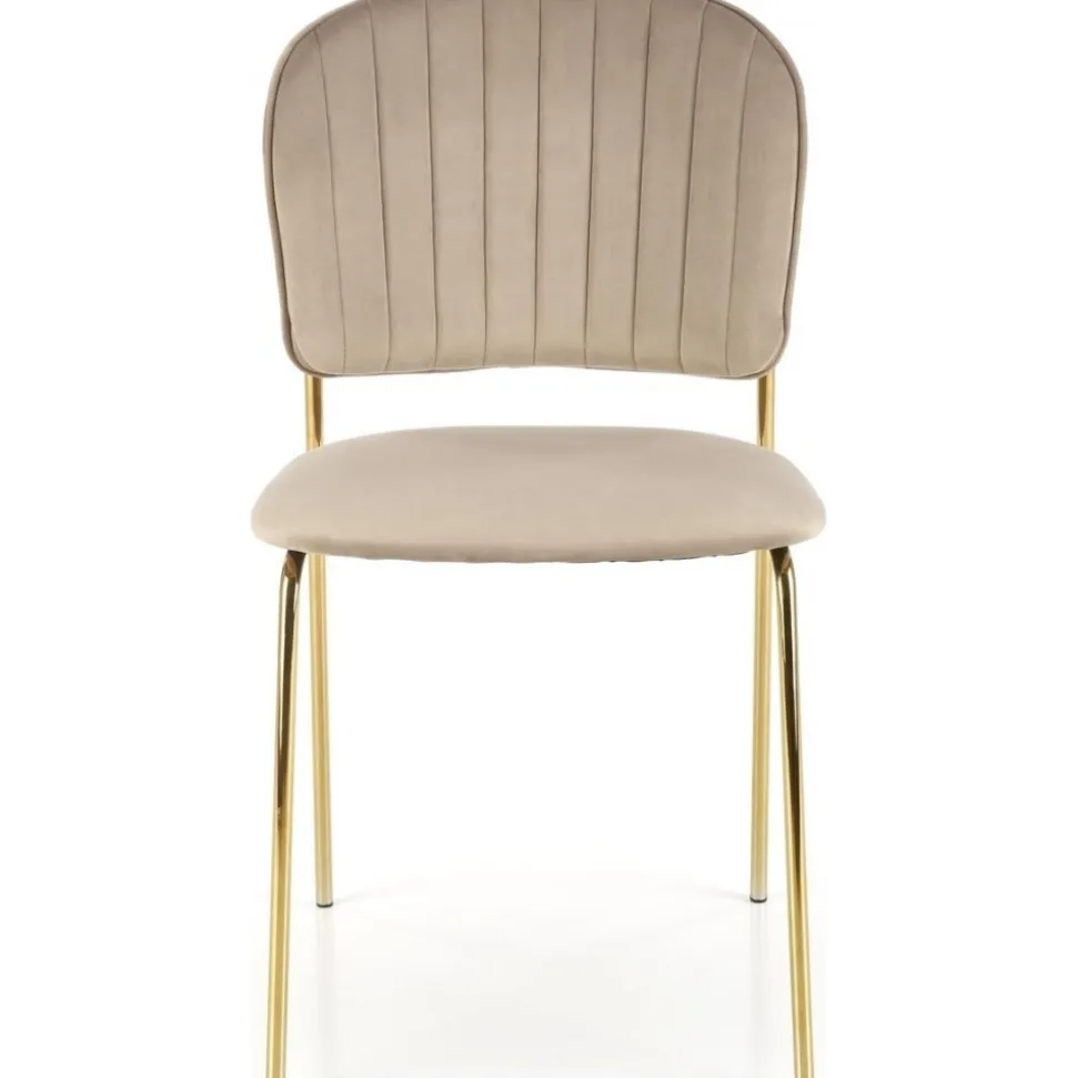 Matstol med klädsel av sammetstyg. Underrede av kromat stål.
