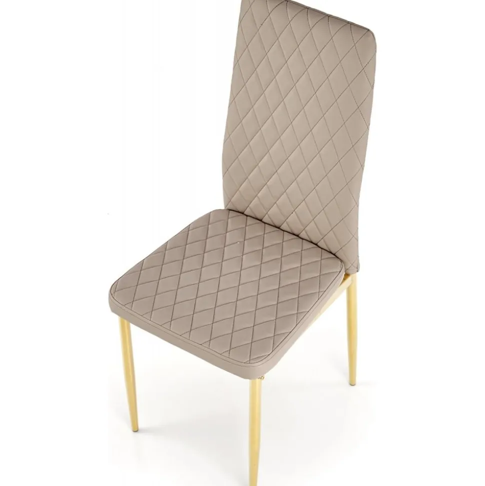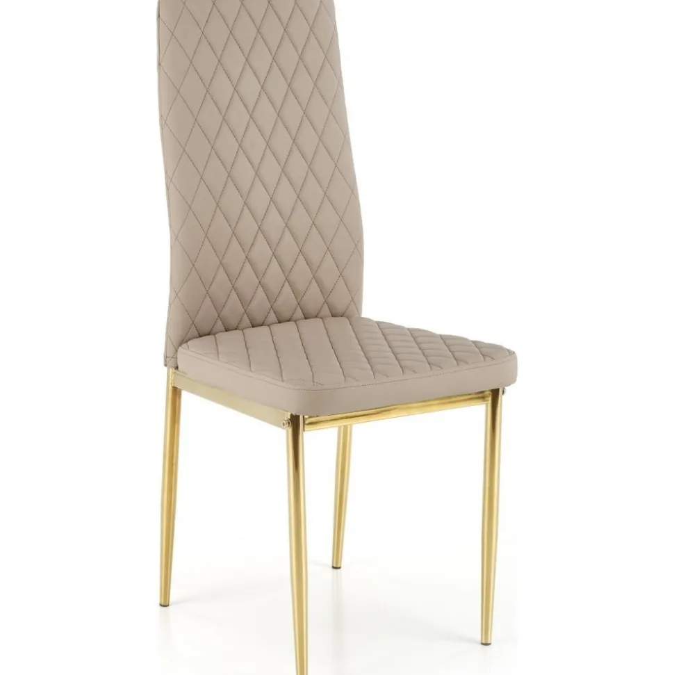 Matstol med klädsel av ekoläder. Underrede av kromat stål.