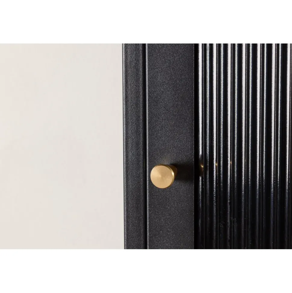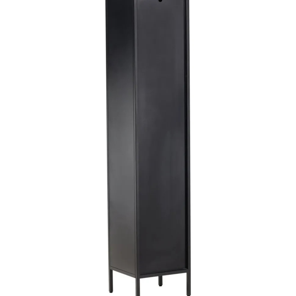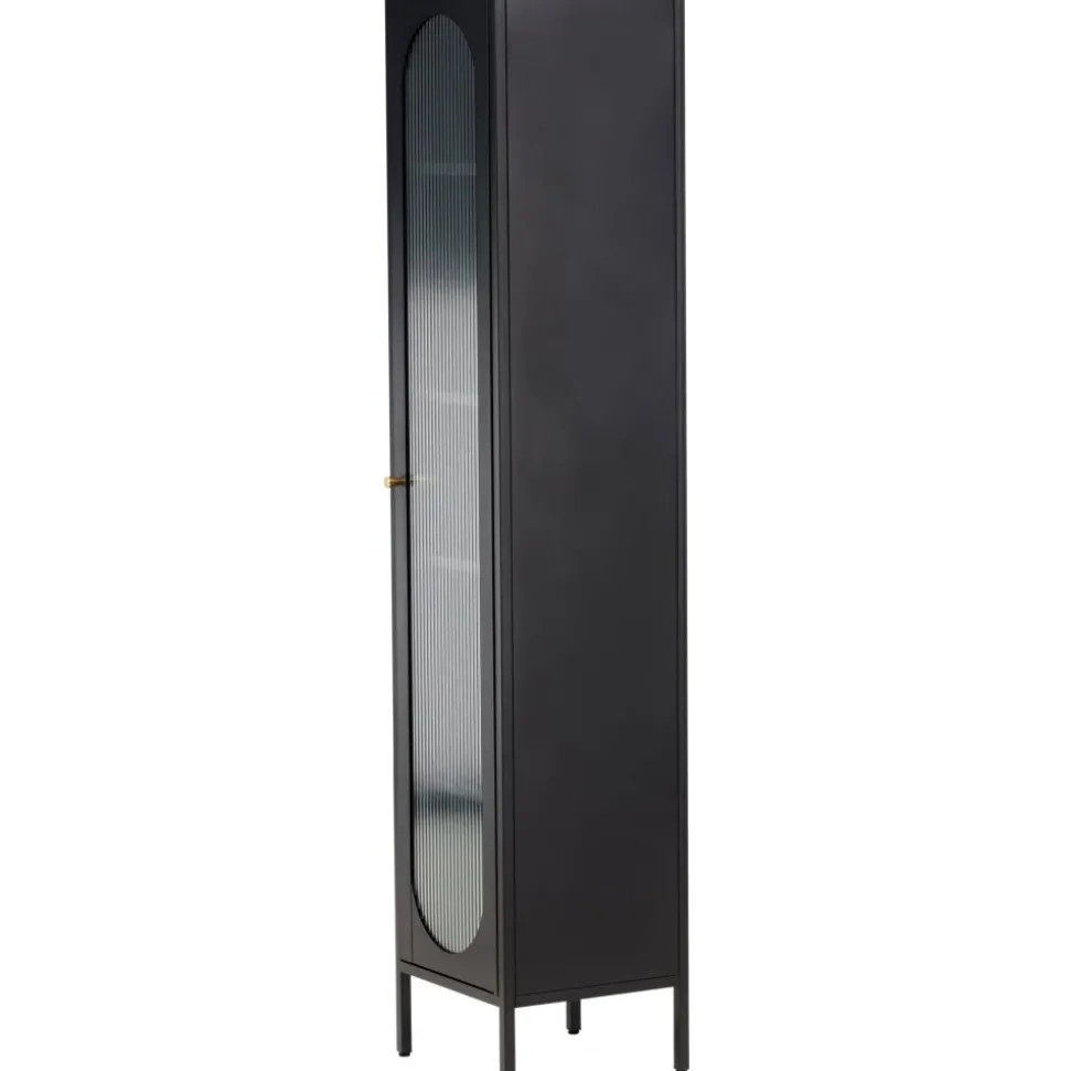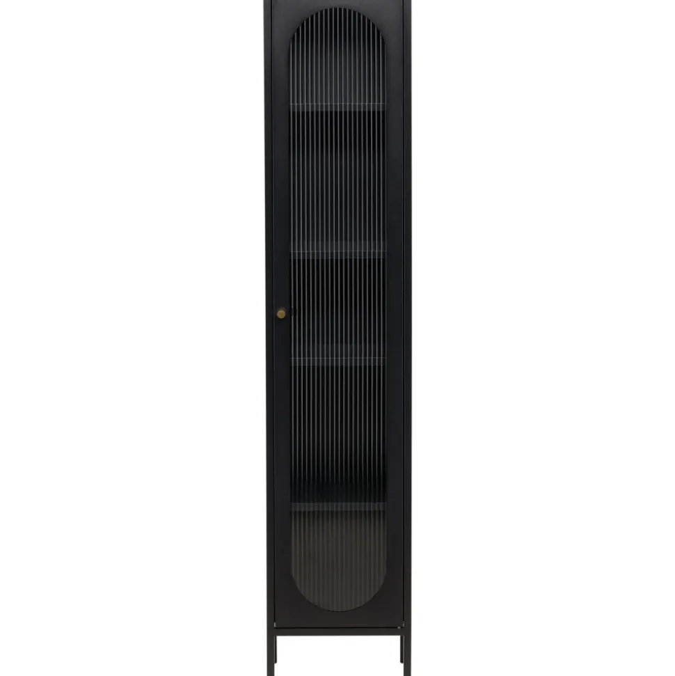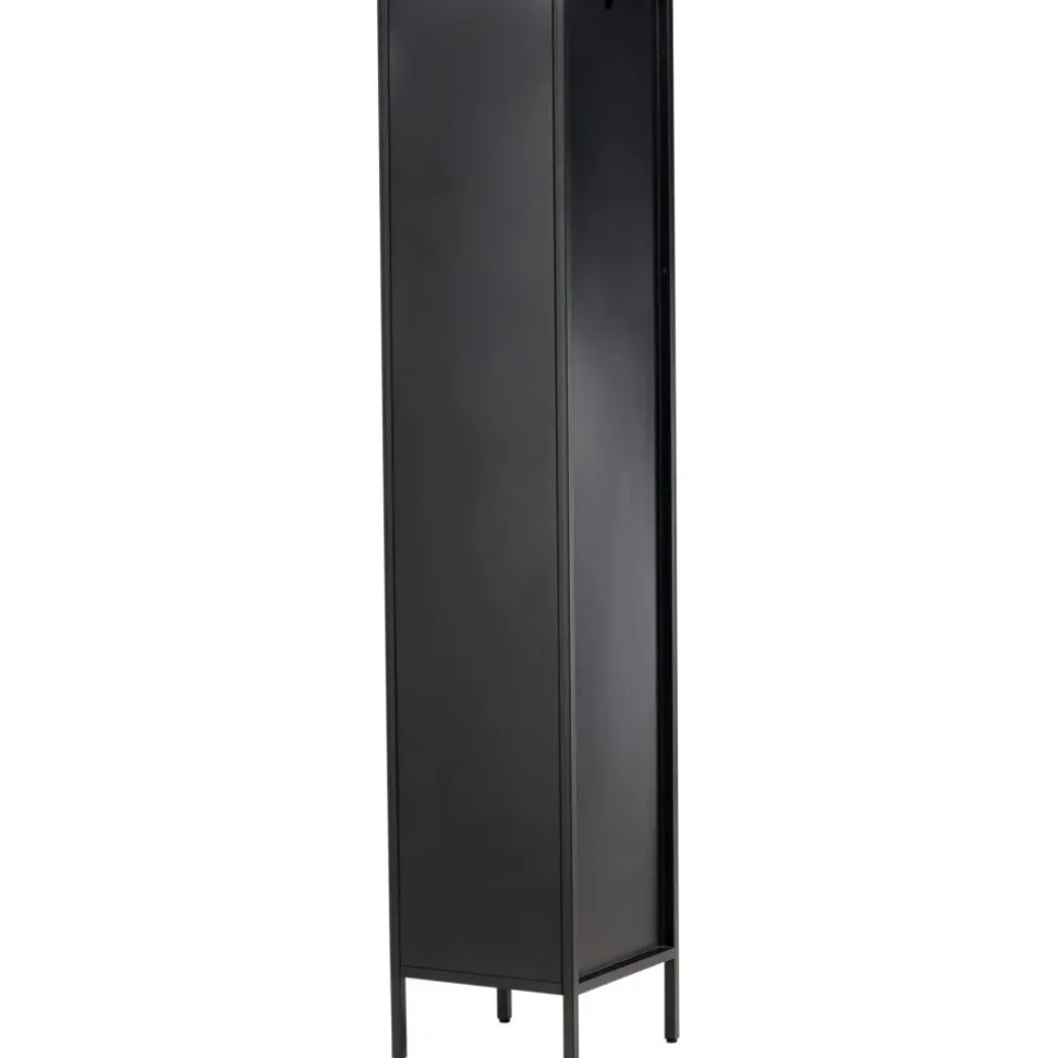 Med Cali stålskåp får du en smakfull och praktisk förvaringslösning som förenar stil och funktionalitet. Skåpet är en uttrycksfull och pålitlig möbel som passar perfekt i både moderna och traditionella inredningar. Den eleganta svarta färgen ger skåpet en tidlös karaktär som kommer att komplettera din heminredning med elegans. Skåpet är utrustat med fyra rymliga hyllplan, vilket ger dig gott om utrymme för att organisera. Dörren till skåpet är tillverkad av vågigt glas, vilket ger en subtil touch av textur och en unik visuell dimension till möbeln. Ge din inredning en uppgradering med Cali stålskåp och skapa en stilfull och organiserad atmosfär i ditt hem. Oavsett om du placerar den i vardagsrummet, sovrummet eller kontoret kommer Cali att vara ett praktiskt och elegant tillskott till din inredning. Levereras omonterad.