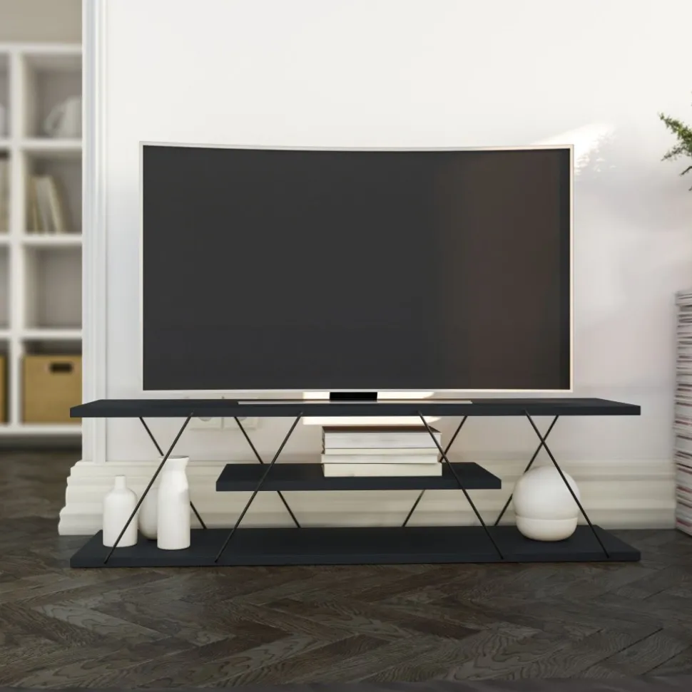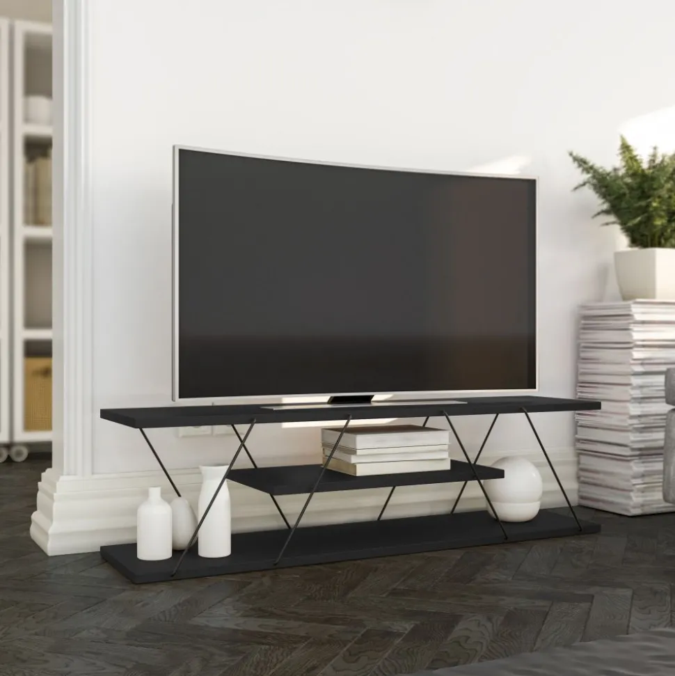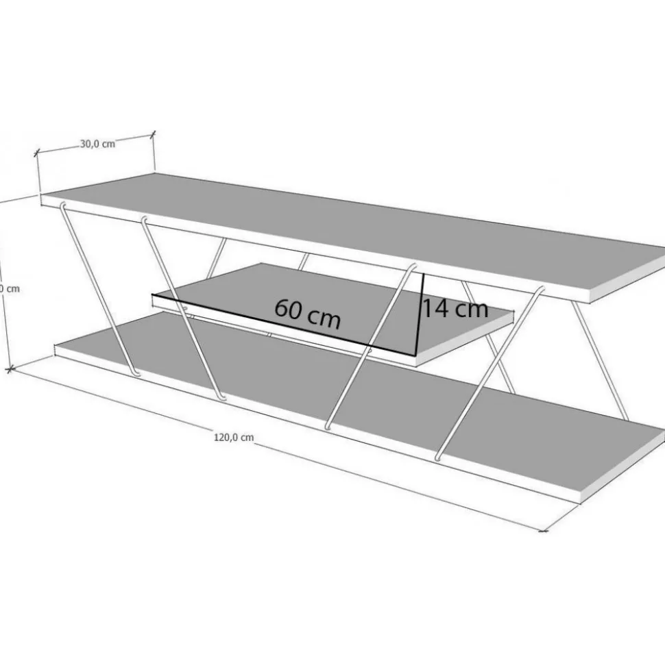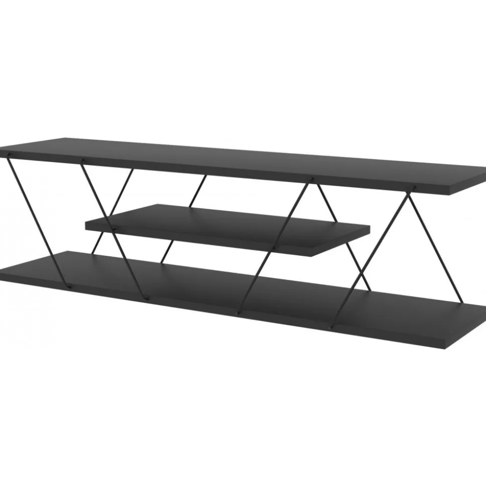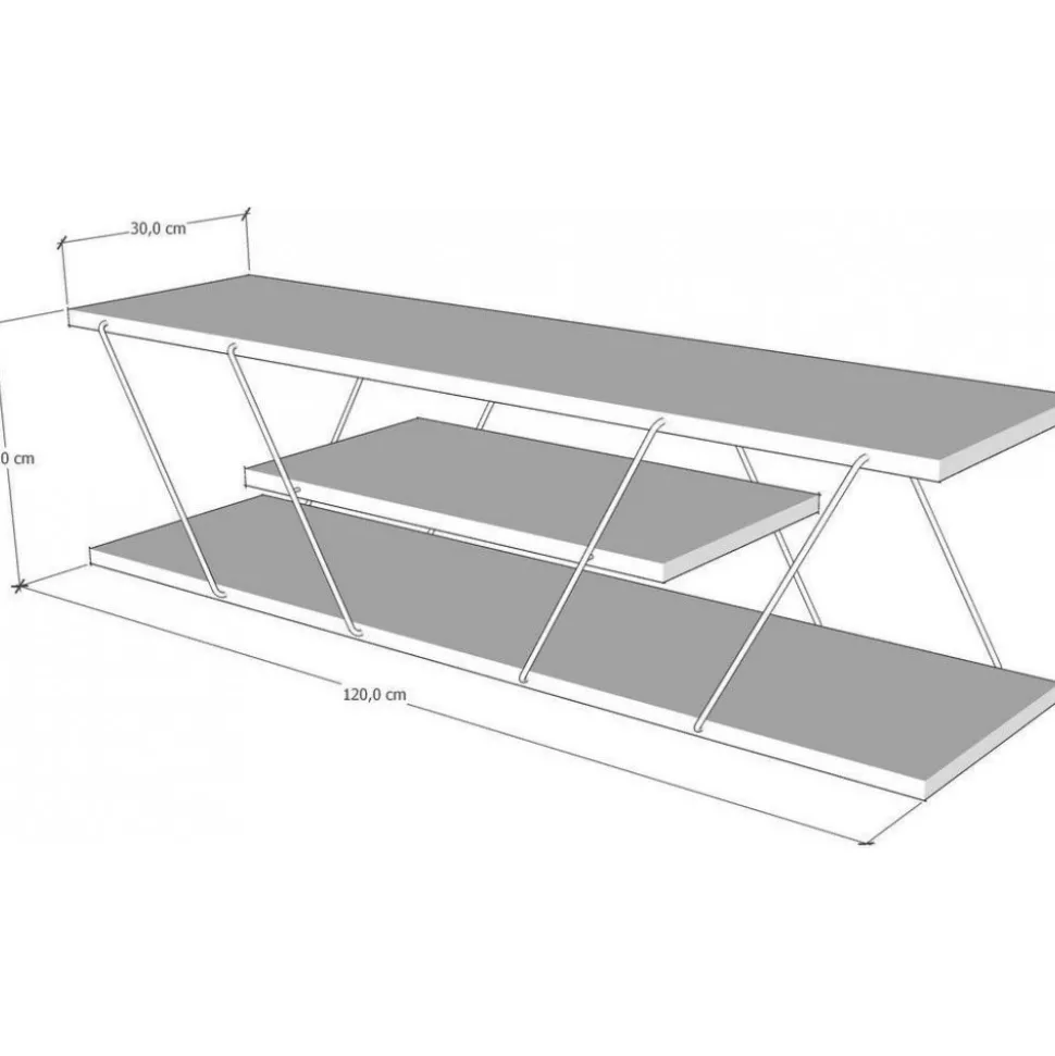 Mediabänk av trä och metall.
