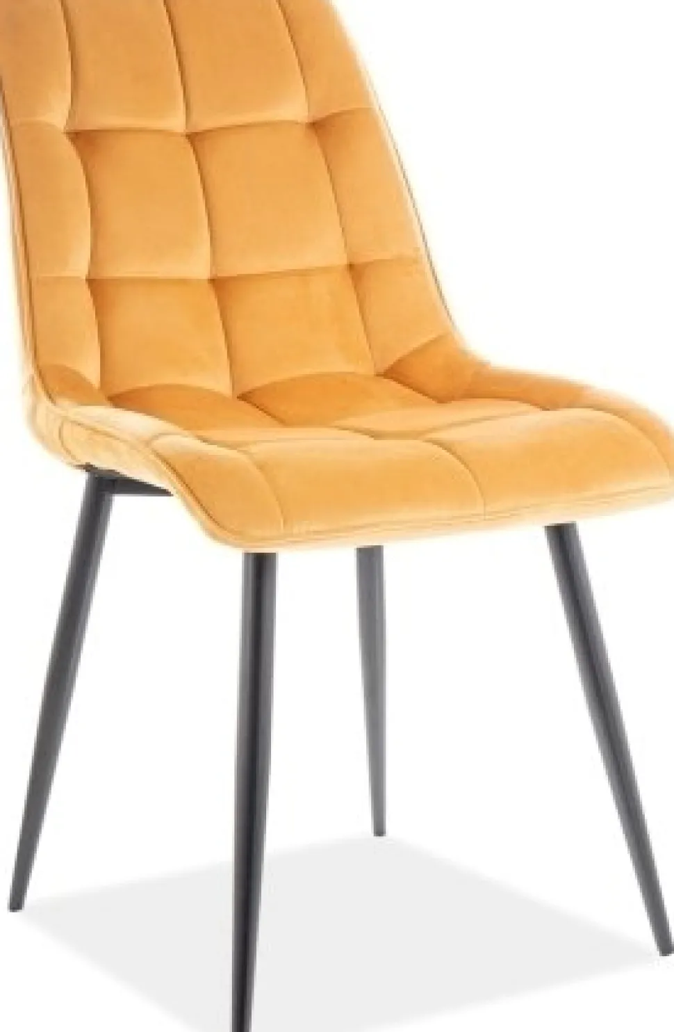 Matstol i metall. Klädd med tyg i sammetsimitation.