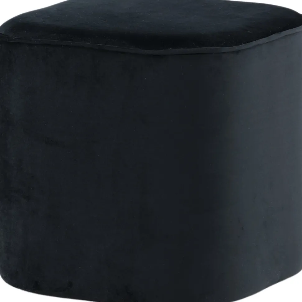 Sittpuff av trä, klädd med polyestertyg.