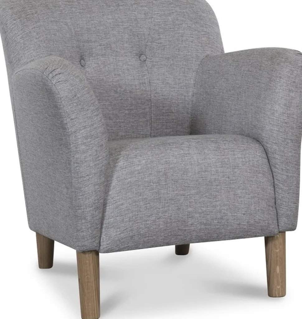 Le Grande är en stilfull retroinspirerad clubfåtölj som kombinerar klassiskt utseende med modern sittkomfort. Fåtöljen är klädd i ett slitstarkt, ljusgrått tyg (Rocco 571) och har dekorativa knappar i ryggen som förstärker dess eleganta karaktär. De massiva benen i ek ger både stabilitet och en naturlig värme till designen.