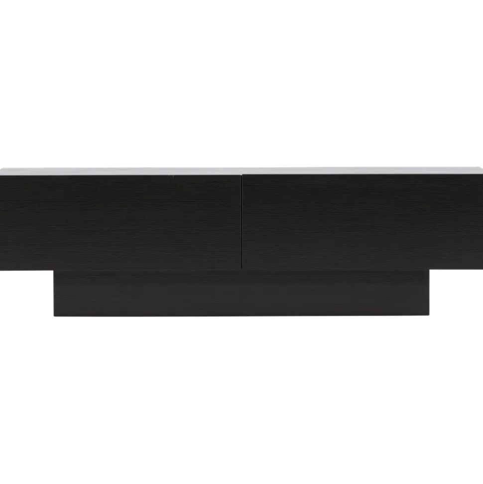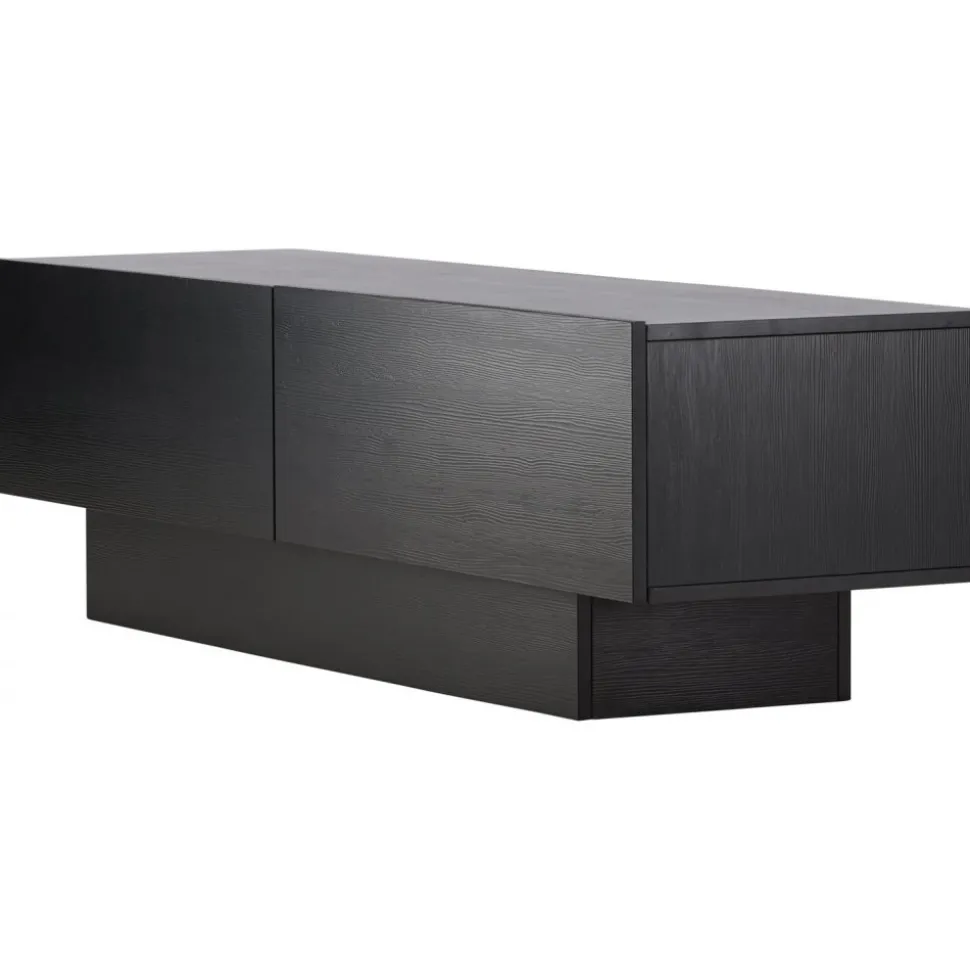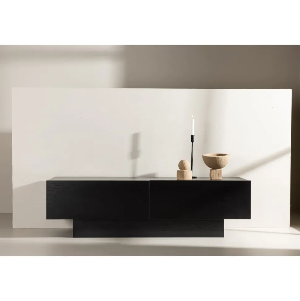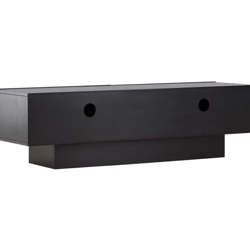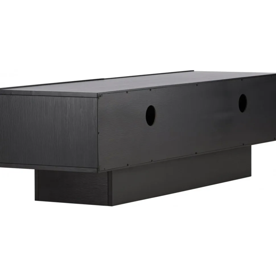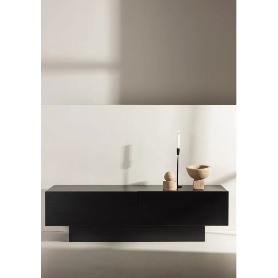 Letar du efter den perfekta kombinationen av funktion och stil för din tv-hörna? Då är Cuenca Tv-bänk i sotig svart finish ditt perfekta val! Tillverkad i en genomtänkt, nordisk design i en sotig svart färg av melamin, ger denna din inredning en modern touch samtidigt som den erbjuder en smart förvaringslösning vid soffgruppen. Njut av fördelen med den smidiga skåpsluckan, en dold förvaringsmöjlighet där du kan organisera dina prylar och Tv-tillbehör med lätthet. Glasskivan som döljer sig däri bär upp allt du önskar förvara och skapar även utrymme för mer med sin smarta hylla. Dekorera sedan toppskivan för en mer hemtrevlig och modern look. Pryd med ljusstakar, böcker eller en liten växt för att ge liv och rörelse till blickfånget. Här får du chansen att skapa en atmosfär som passar just din stil och gör att du känner dig omringad av komfort och elegans. Den robusta, centerplacerade foten ger inte bara ett stabilt stöd åt din bänk, den lyfter även upp ditt rum och gör dammsugningen till en enkel uppgift. Stilren, modern och tidlös – Cuenca Tv-bänk sätter en ny standard för både förvaring och design! Levereras omonterad.
