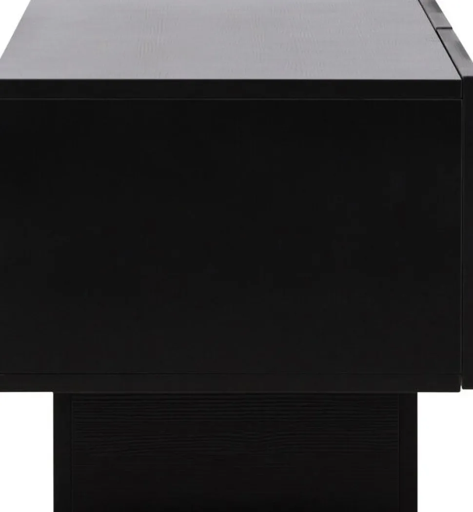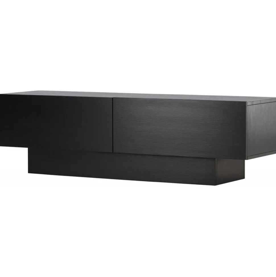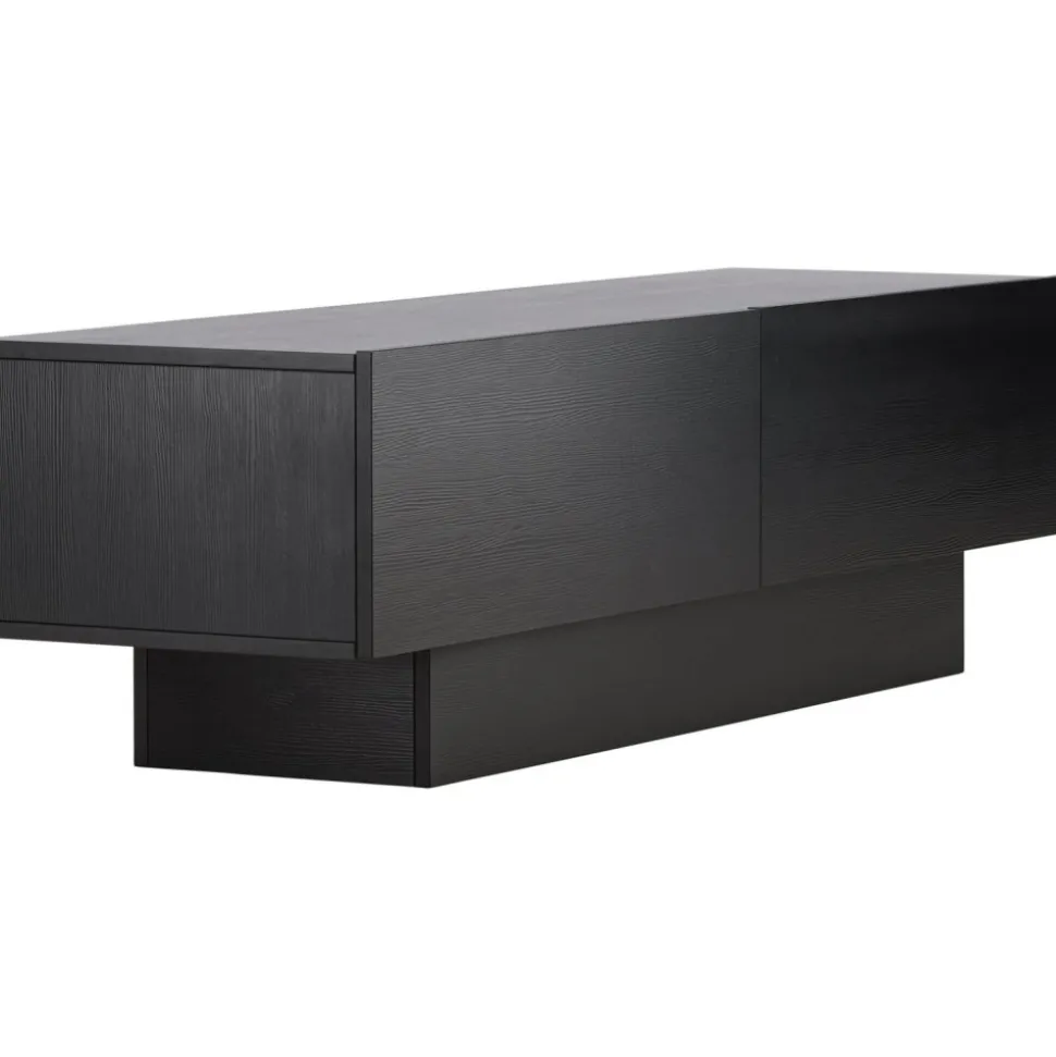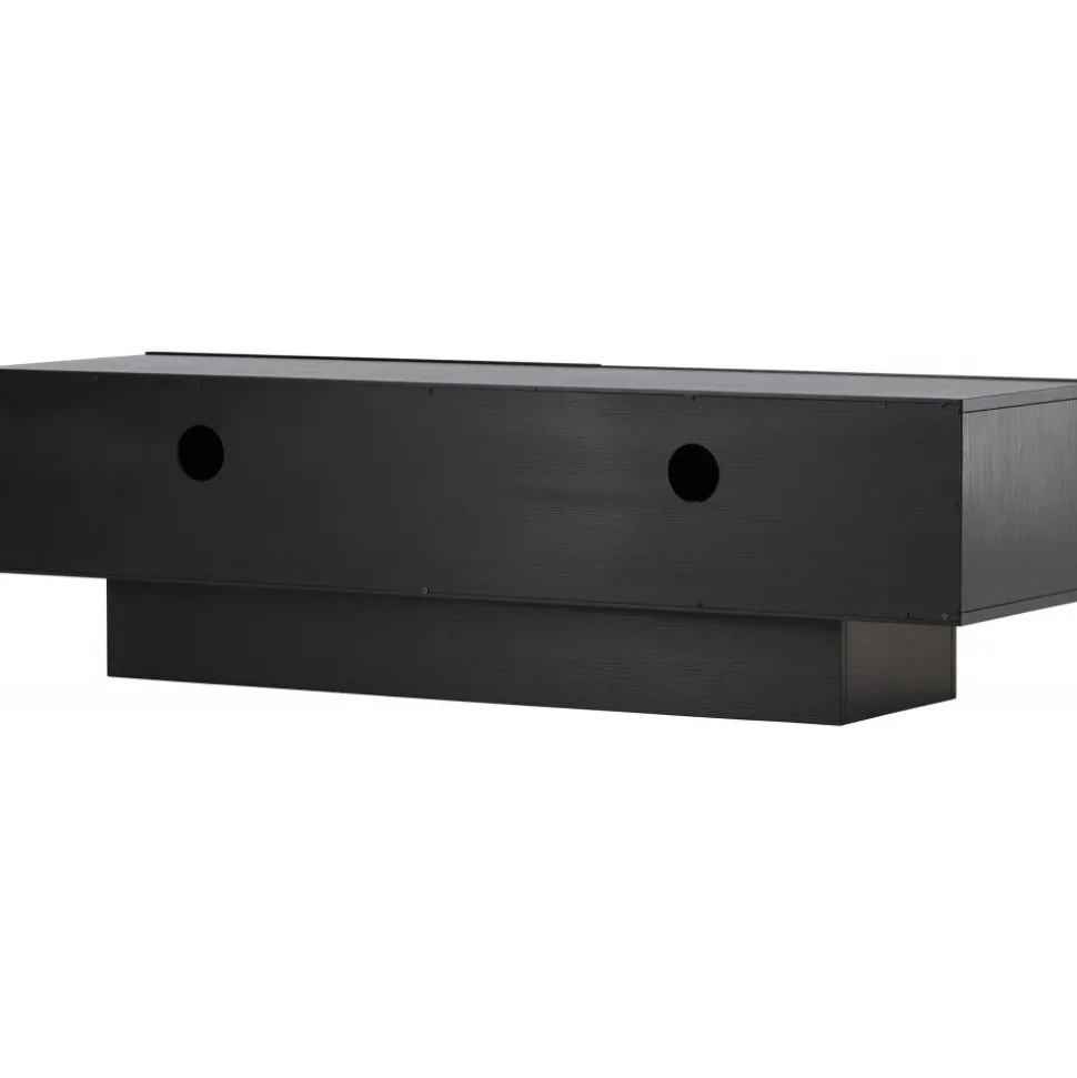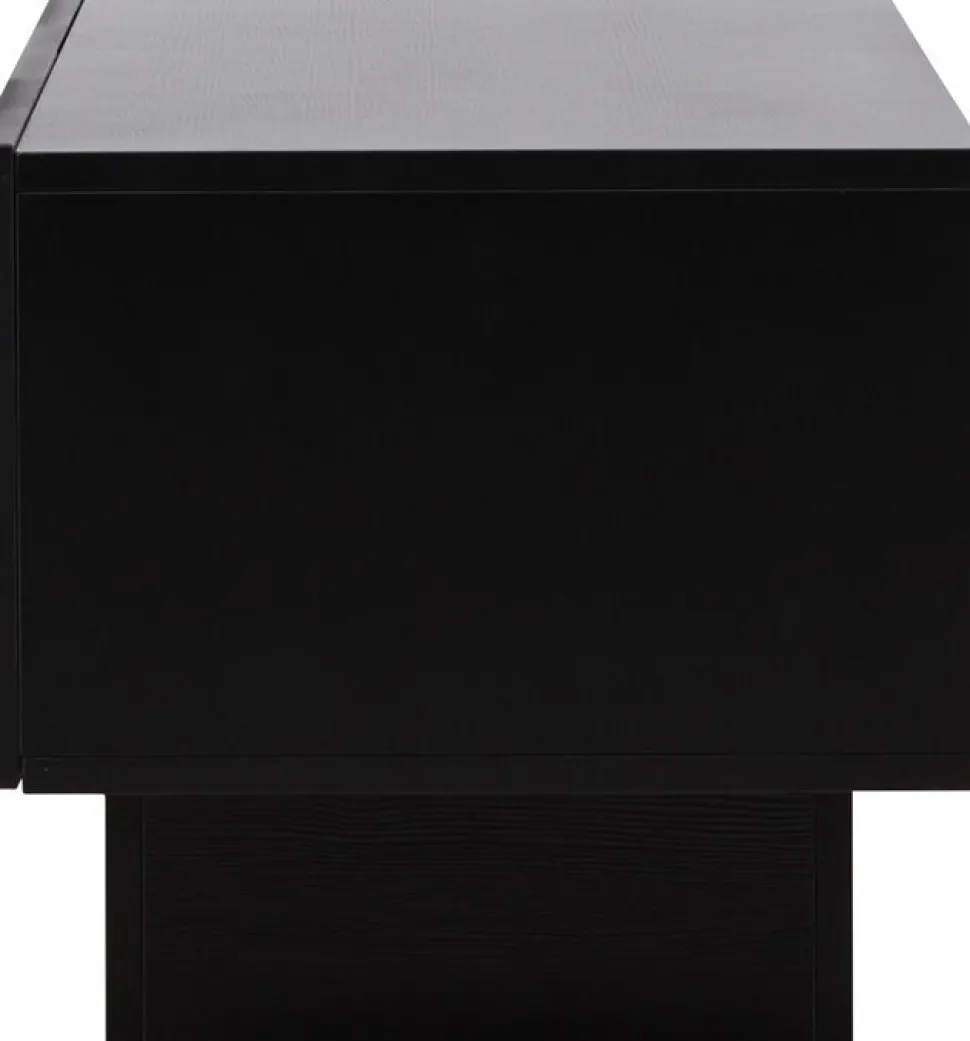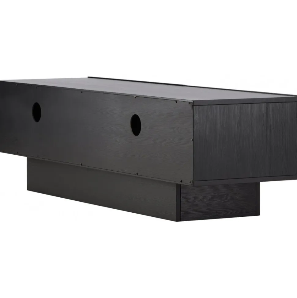 Letar du efter den perfekta kombinationen av funktion och stil för din tv-hörna? Då är Cuenca Tv-bänk i sotig svart finish ditt perfekta val! Tillverkad i en genomtänkt, nordisk design i en sotig svart färg av melamin, ger denna din inredning en modern touch samtidigt som den erbjuder en smart förvaringslösning vid soffgruppen. Njut av fördelen med den smidiga skåpsluckan, en dold förvaringsmöjlighet där du kan organisera dina prylar och Tv-tillbehör med lätthet. Glasskivan som döljer sig däri bär upp allt du önskar förvara och skapar även utrymme för mer med sin smarta hylla. Dekorera sedan toppskivan för en mer hemtrevlig och modern look. Pryd med ljusstakar, böcker eller en liten växt för att ge liv och rörelse till blickfånget. Här får du chansen att skapa en atmosfär som passar just din stil och gör att du känner dig omringad av komfort och elegans. Den robusta, centerplacerade foten ger inte bara ett stabilt stöd åt din bänk, den lyfter även upp ditt rum och gör dammsugningen till en enkel uppgift. Stilren, modern och tidlös – Cuenca Tv-bänk sätter en ny standard för både förvaring och design! Levereras omonterad.