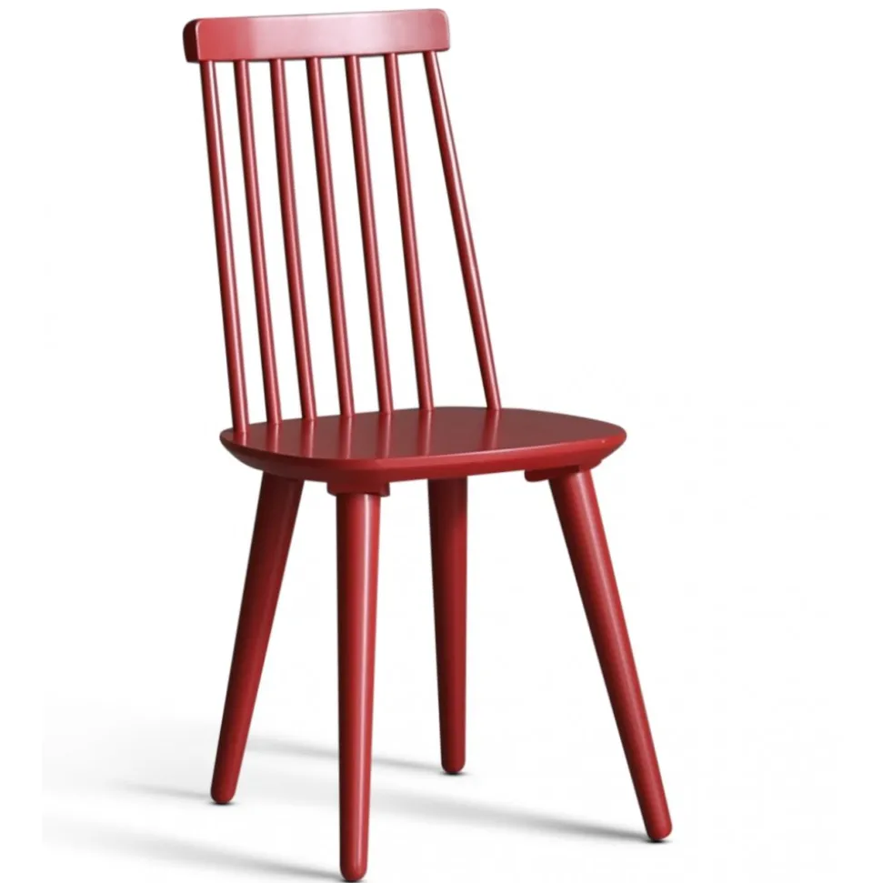 Dalsland med stort och bra matbord med toppskiva i oljad ek och vitlackat underrede. Dalsland pinnstolar i en läcker röd lack (RAL3003)