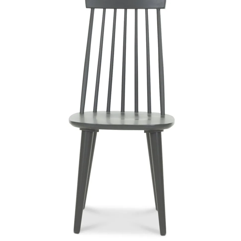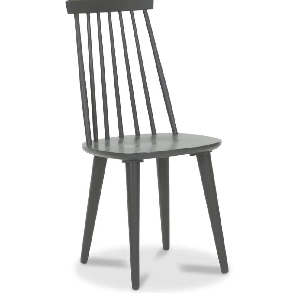 Trästolen är tillverkad i massiv heveaträ som är slitstarkt och kvalitativt, med en fabriksmålad yta i snygg grafitgrå finish.