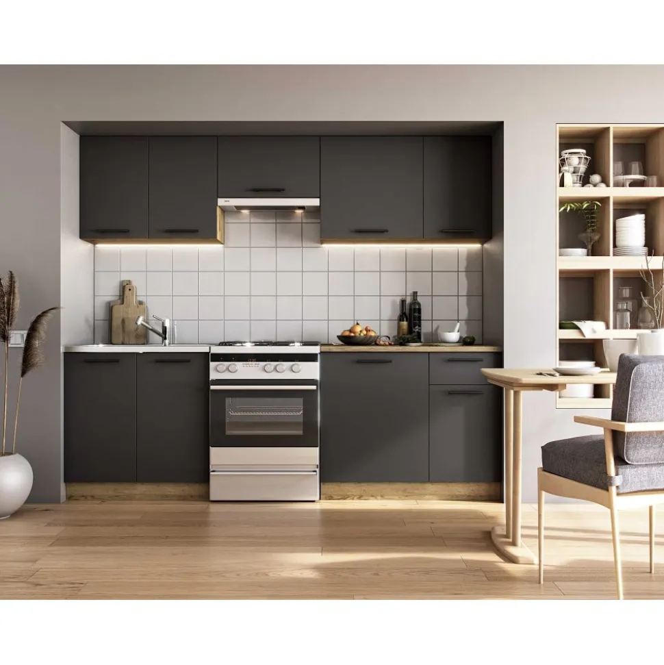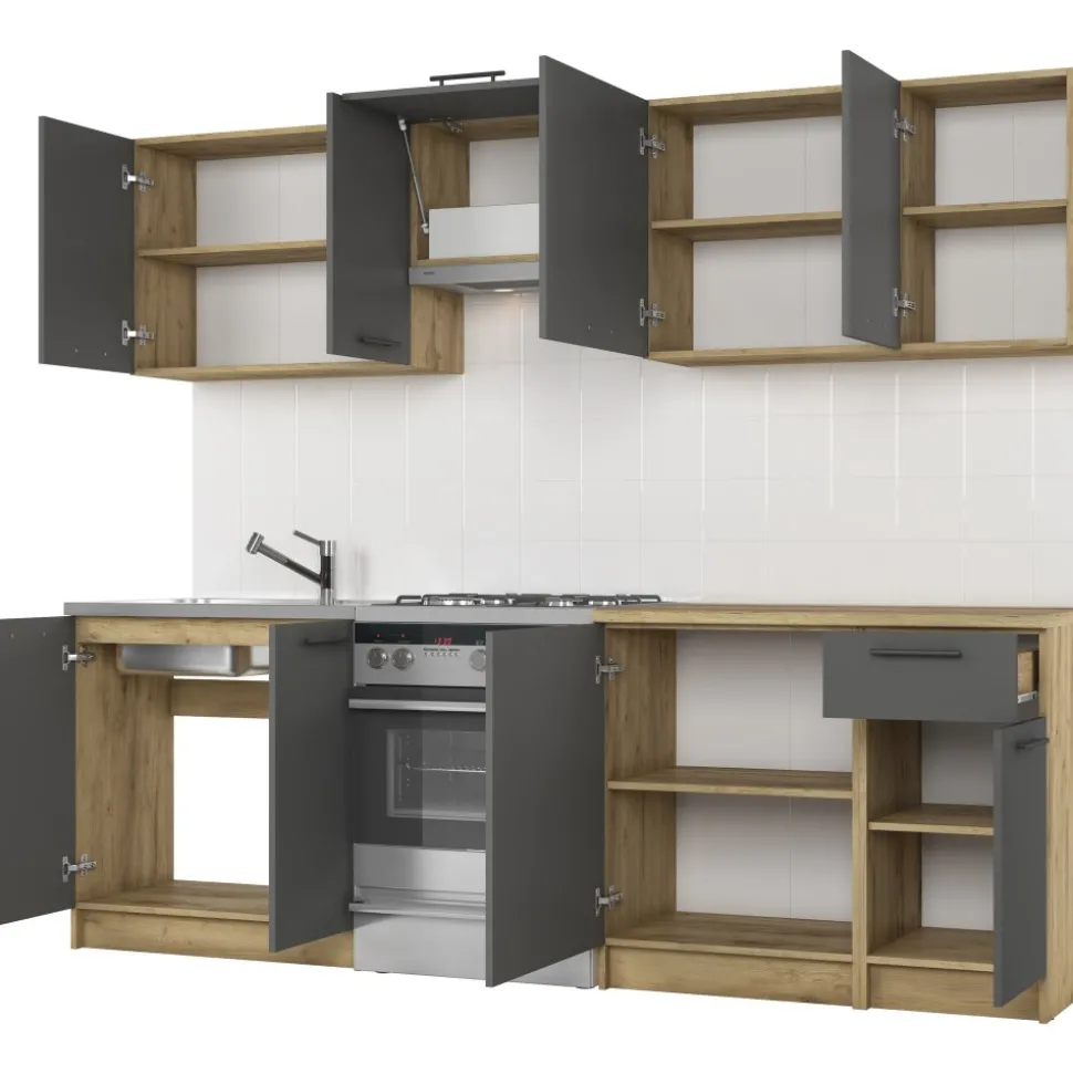 Den harmoniska kontrasten mellan antracit och craft ek gör att detta smälter in i både moderna och klassiska hem. De mörka fronterna ger ett lyxigt intryck, medan de träinspirerade detaljerna tillför värme och karaktär.