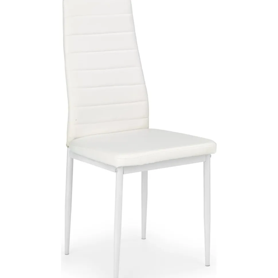 En stilren med en modern design. Underredet är tillverkat i vitlackerad metall med sitsen klädd i ett mycket behagligt vitt konstläder för maximal komfort.