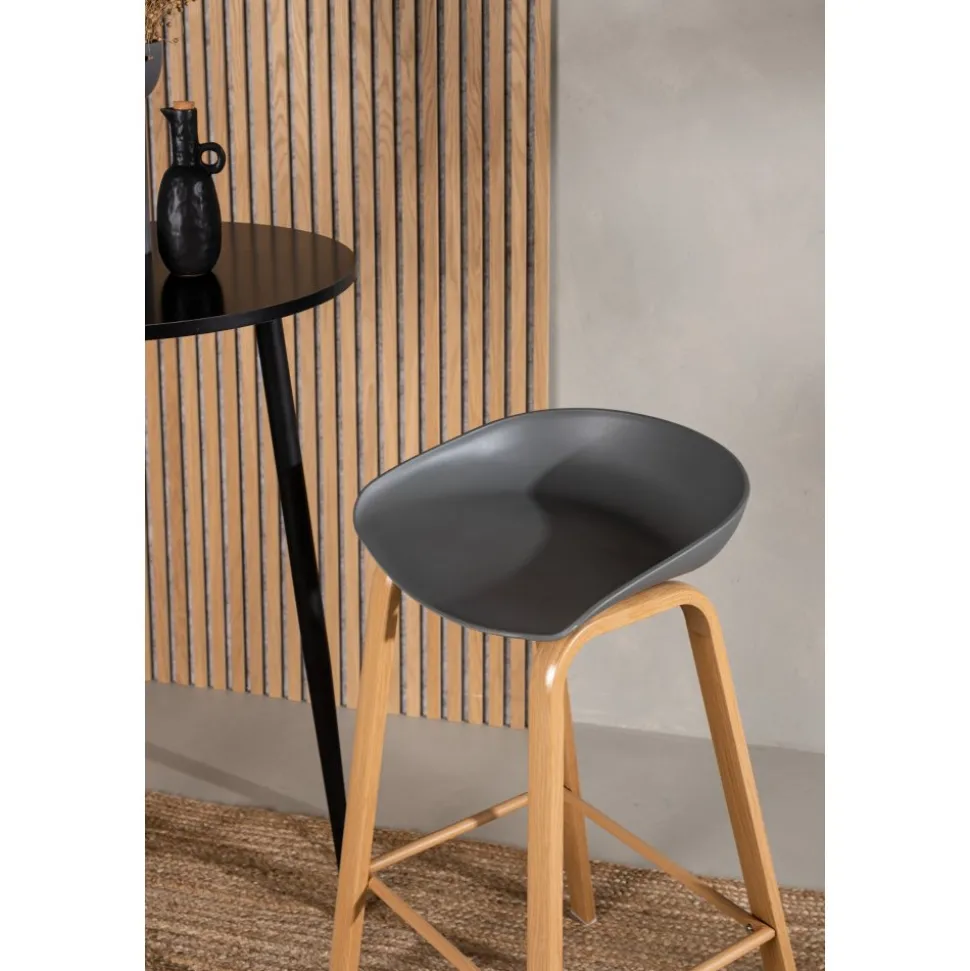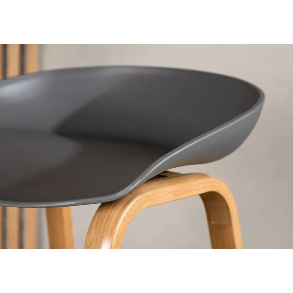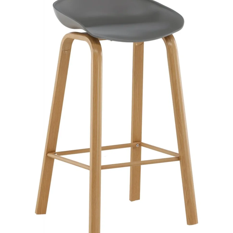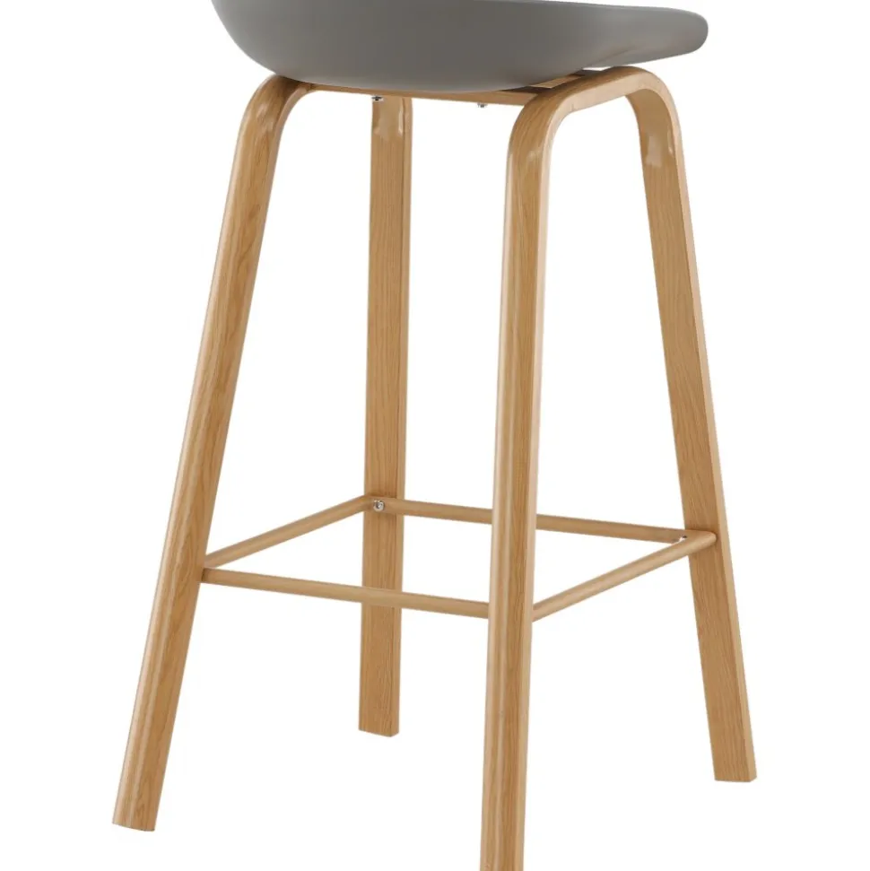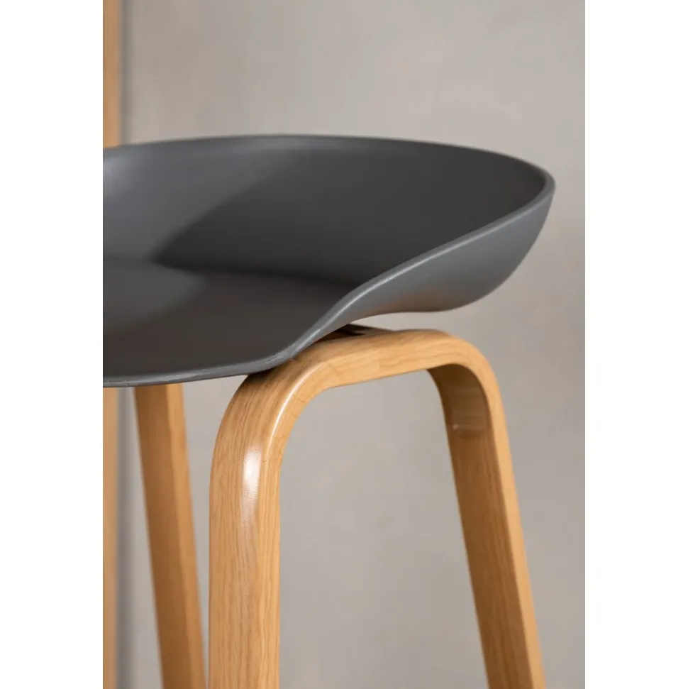 Klassisk som aldrig går ur tiden! Barstol med en stilsäker design med raka stolsben i ekfärgat trä och en enkel sits i grå PP. Barstolen har också ett integrerat fotstöd för extra komfort. Placera intill baren i köket för att välkomna lite extra sällskap eller kring ett högre matbord – lika användbar som praktisk helt enkelt! Den här barstolen förlänger de gemensamma stunderna i hemmets hjärta!