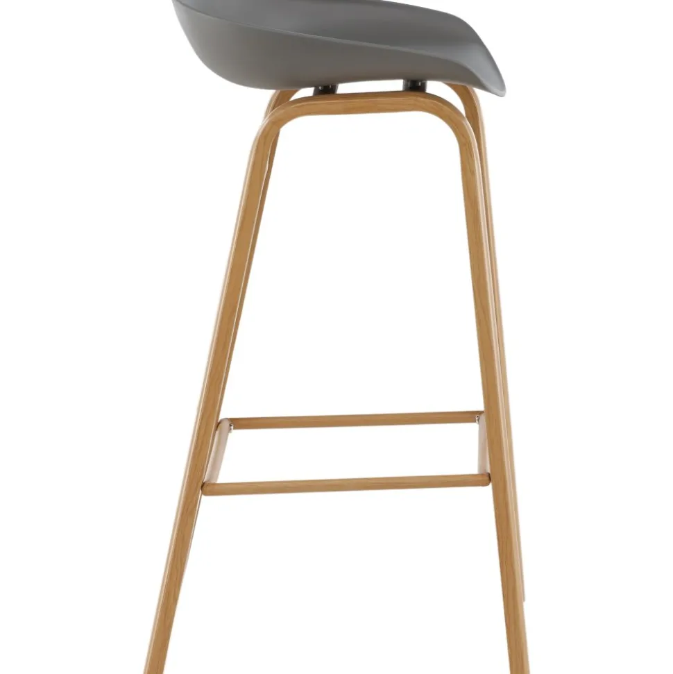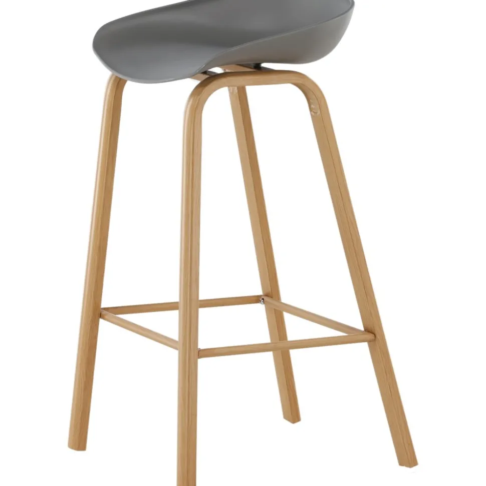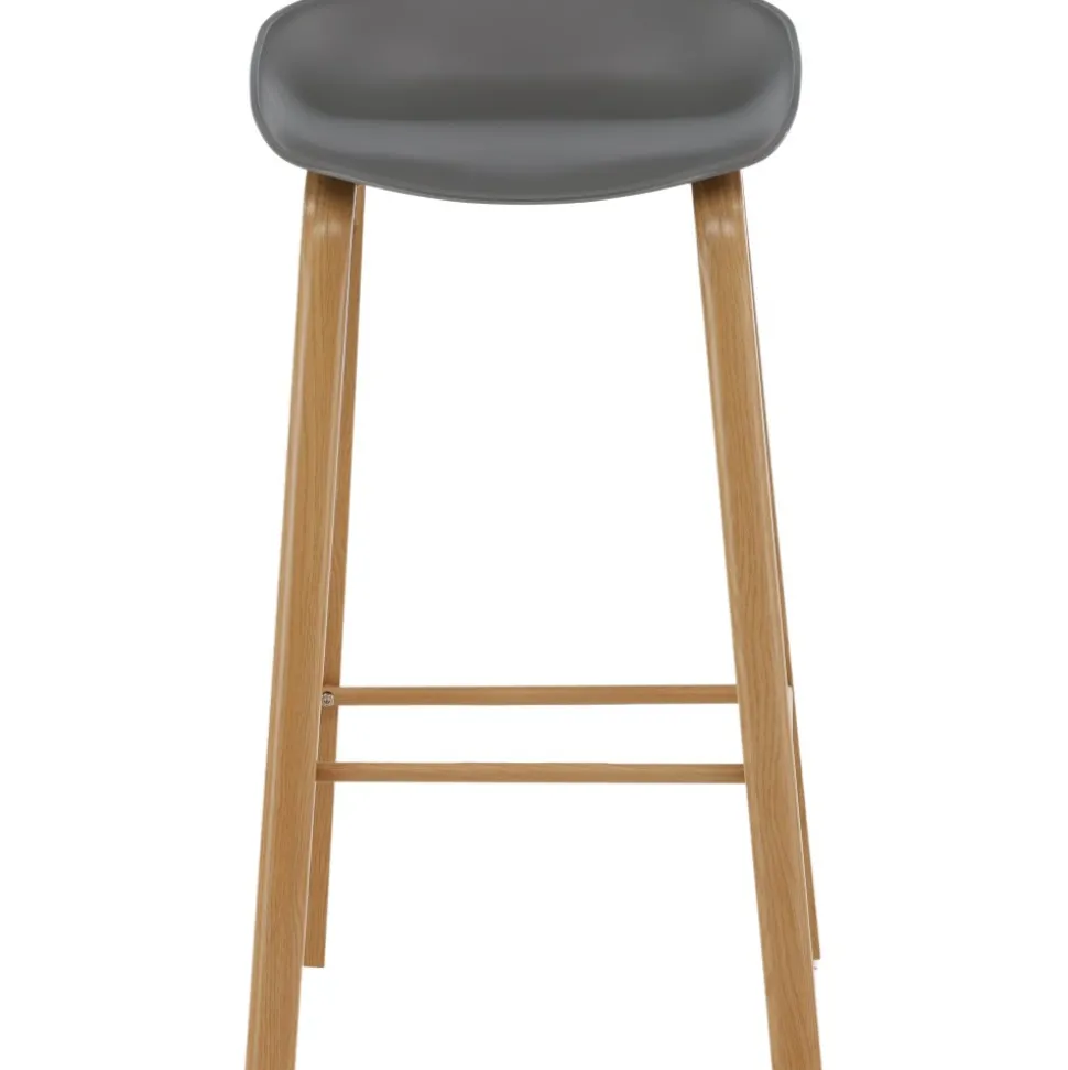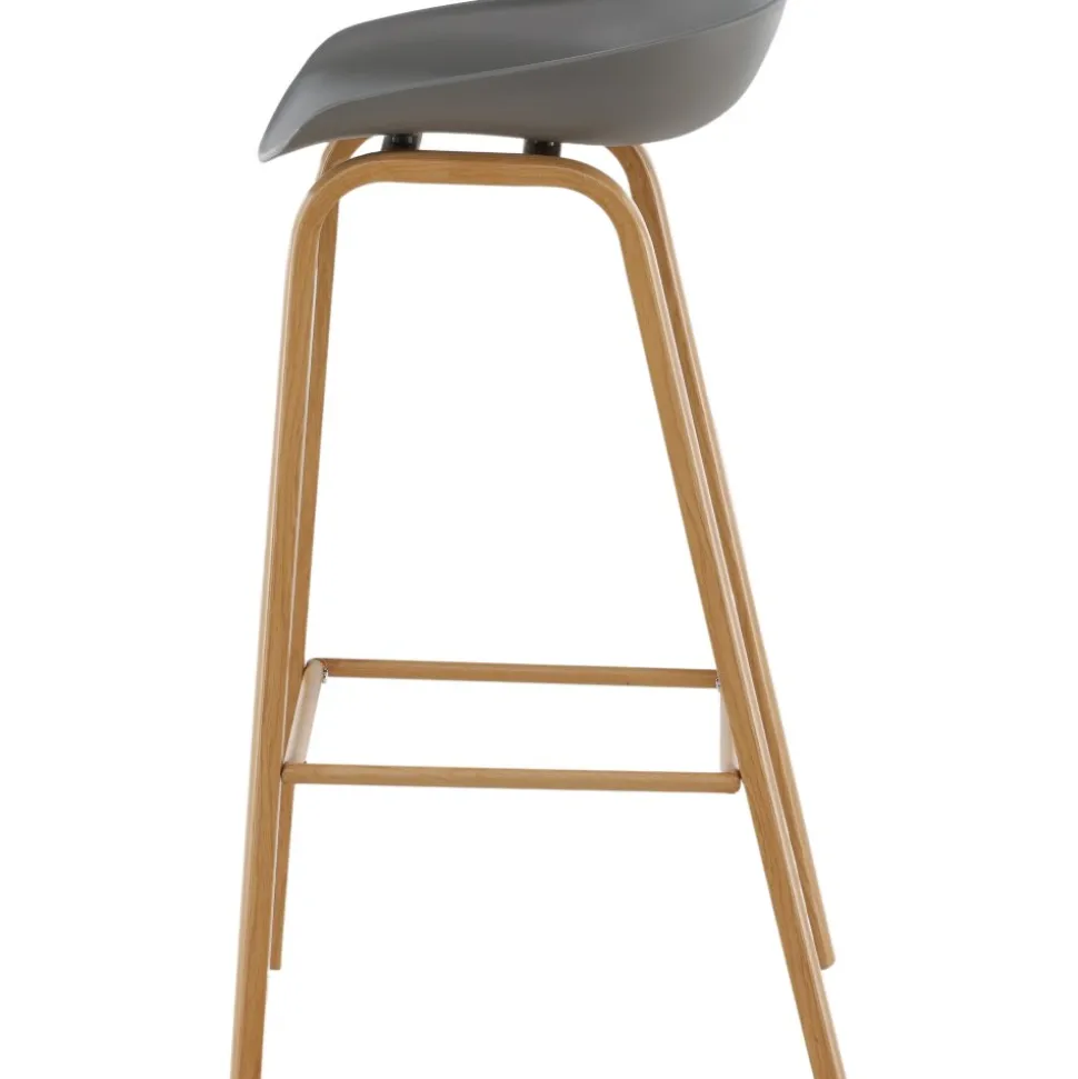 Klassisk som aldrig går ur tiden! Barstol med en stilsäker design med raka stolsben i ekfärgat trä och en enkel sits i grå PP. Barstolen har också ett integrerat fotstöd för extra komfort. Placera intill baren i köket för att välkomna lite extra sällskap eller kring ett högre matbord – lika användbar som praktisk helt enkelt! Den här barstolen förlänger de gemensamma stunderna i hemmets hjärta!