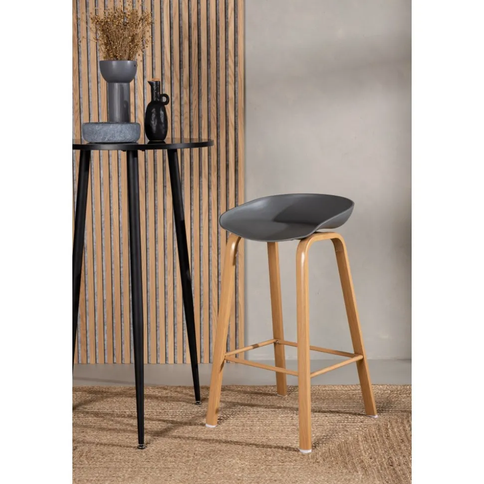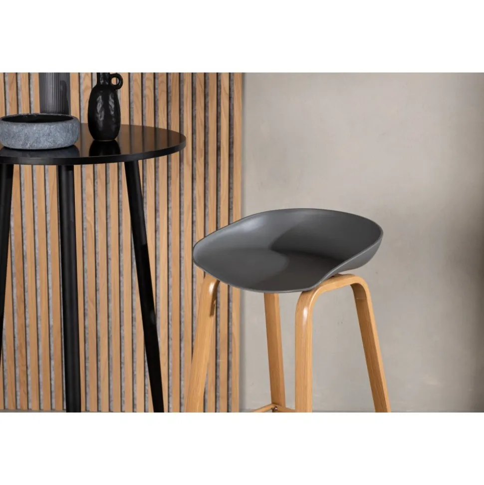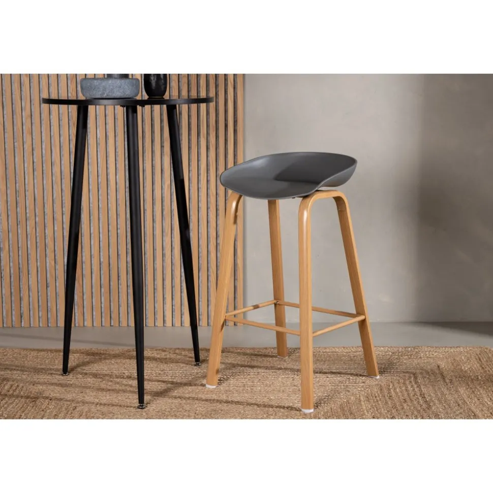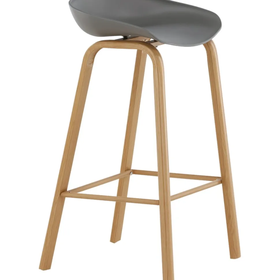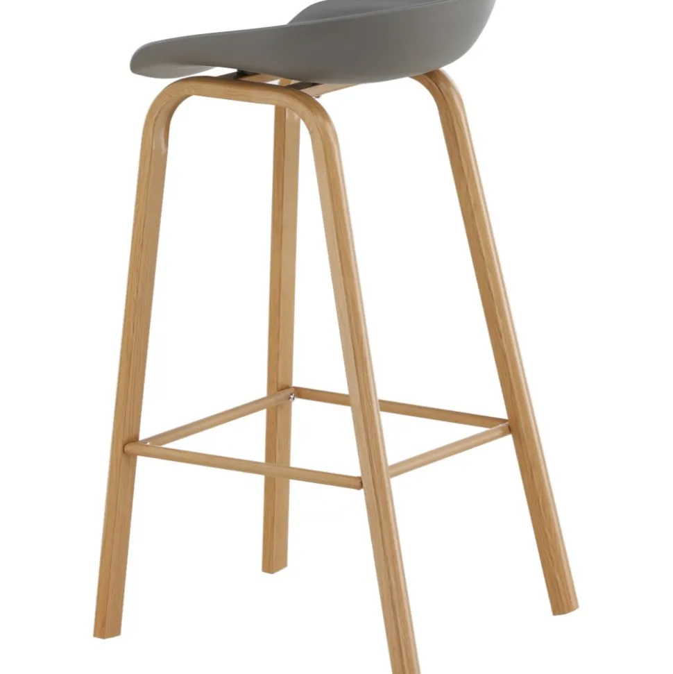 Klassisk som aldrig går ur tiden! Barstol med en stilsäker design med raka stolsben i ekfärgat trä och en enkel sits i grå PP. Barstolen har också ett integrerat fotstöd för extra komfort. Placera intill baren i köket för att välkomna lite extra sällskap eller kring ett högre matbord – lika användbar som praktisk helt enkelt! Den här barstolen förlänger de gemensamma stunderna i hemmets hjärta!