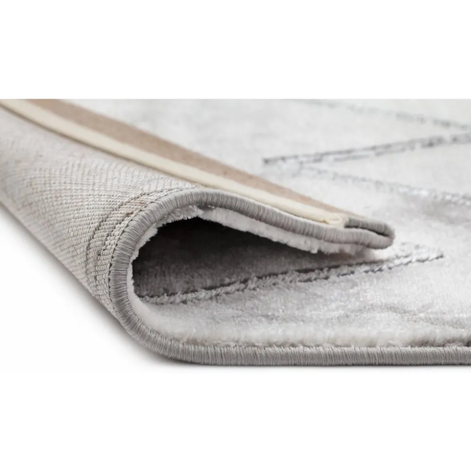 Mattans mönster för tankarna till marmor då den skiftar i olika vit/grå toner, samt att den har mörkare partier som ger mattan ett djup. Mattans mönster är tillverkat i Polyester vilket ger ett härligt lyster när ljuset faller på.
