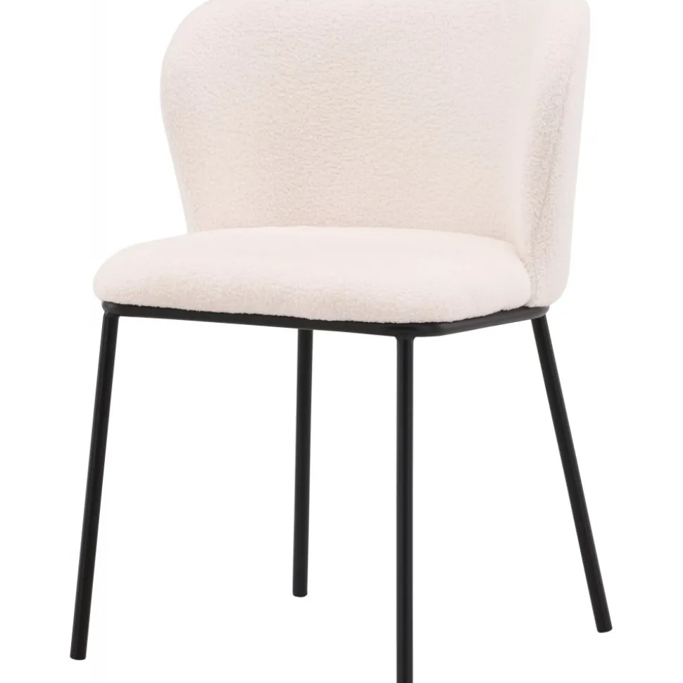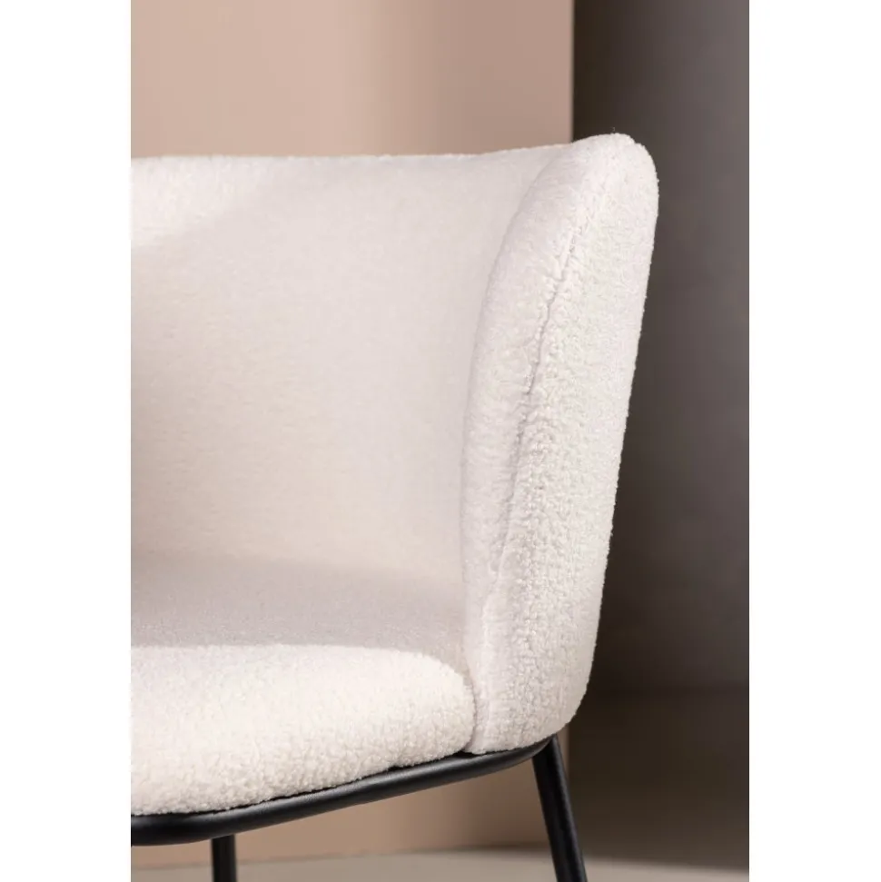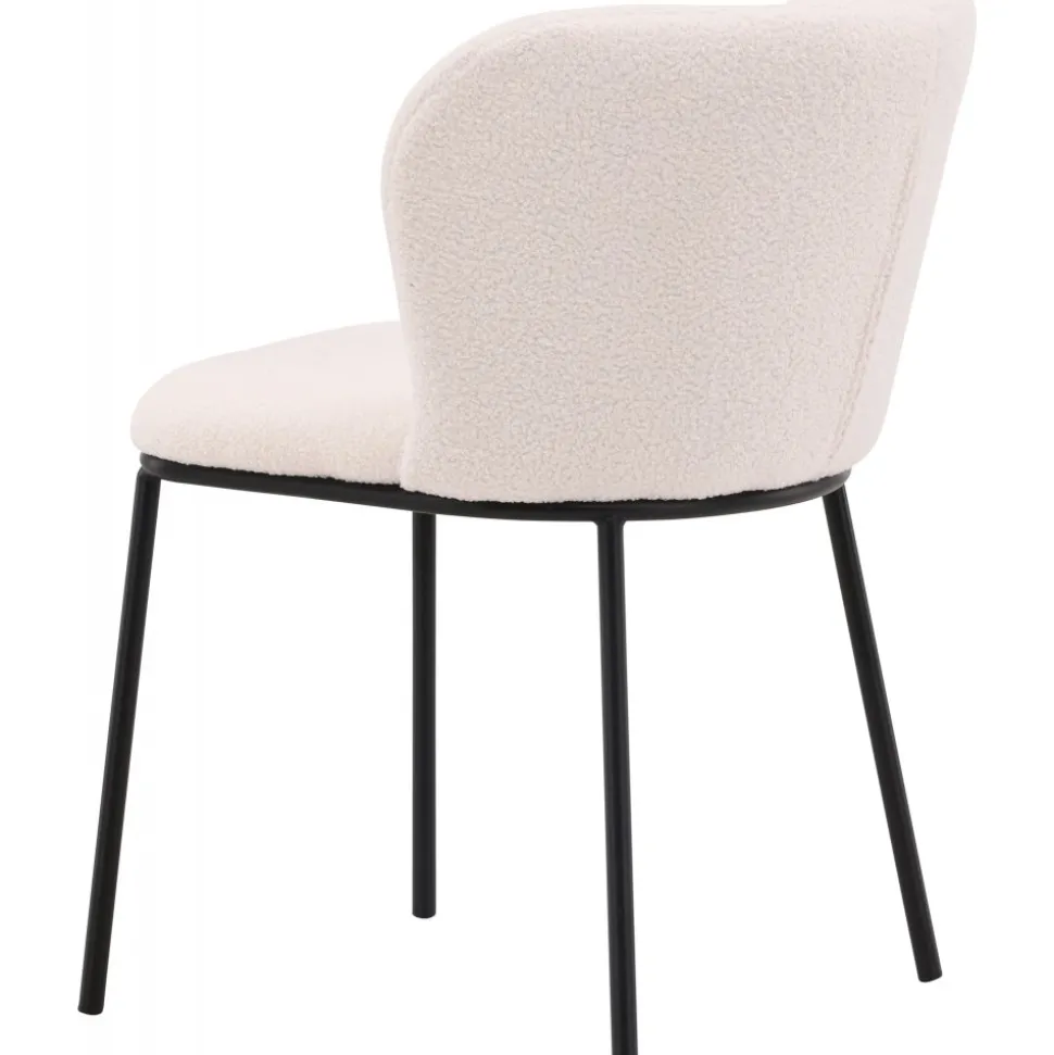 Stolen har en följsam, helklädd sits i vitt boucletyg, som inte bara är bekväm att sitta på, utan även ger en mjuk och inbjudande känsla. De minimalistiska stolsbenen i svart metall ger en elegant kontrast till den vita sitsen och skapar en stilren och modern look. Den stilrena utformningen gör att Edina Matstol står sig över tid. Dess tidlösa design passar perfekt i både klassiska och moderna inredningar. Den bekväma sitsen är utformad för att ge stöd under långvarig sittning, vilket gör den idealisk för både middagssällskap och avkoppling.
