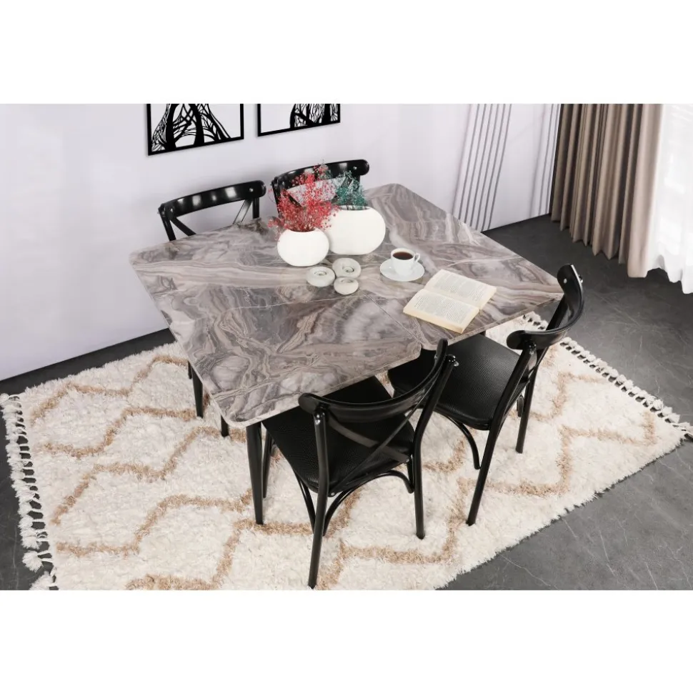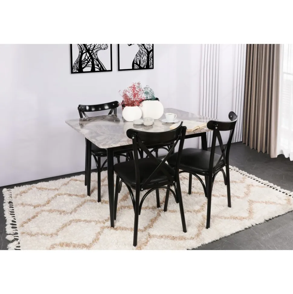 Stol av trä med ben av metall. Paket med 4 st .