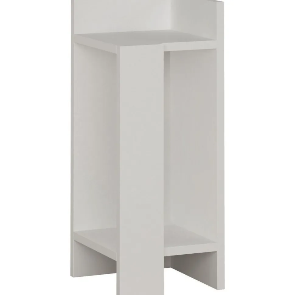 Sängbord av melaminbelagd spånskiva.