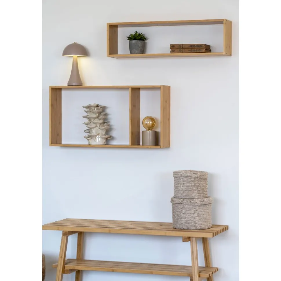 Vägghylla av bambu.