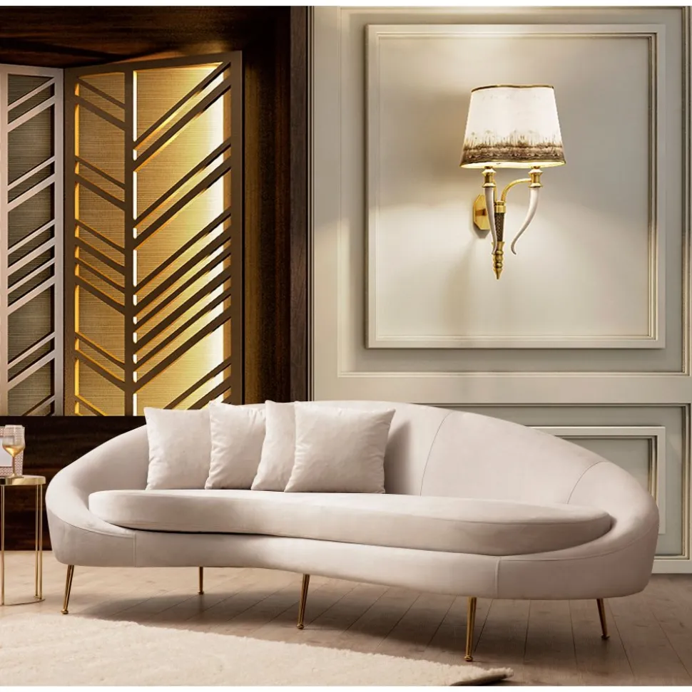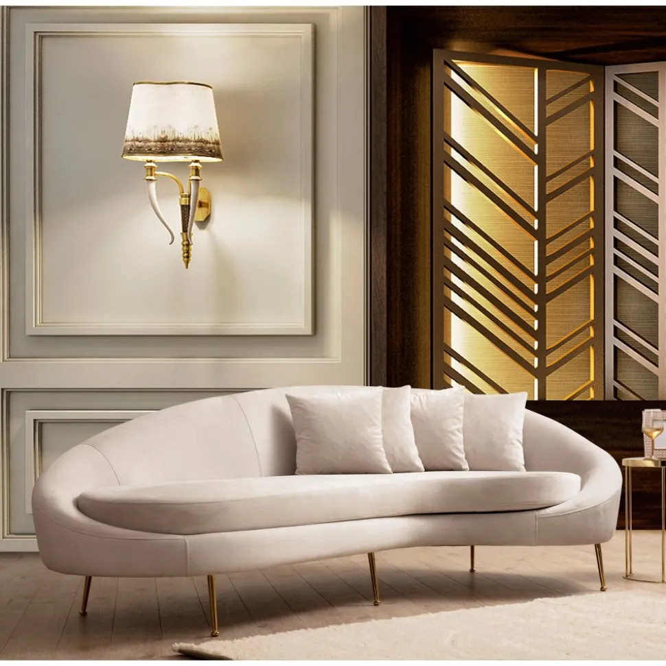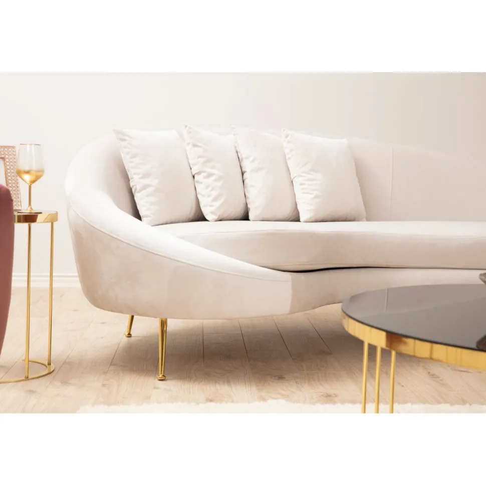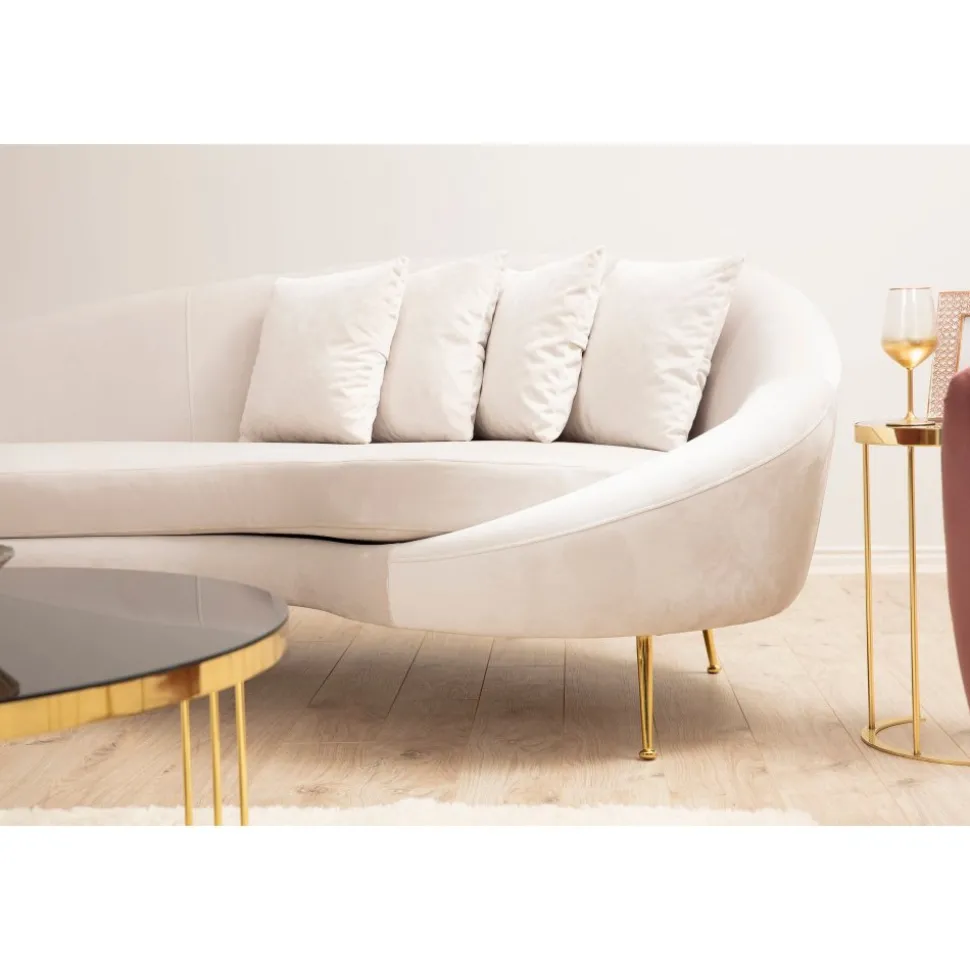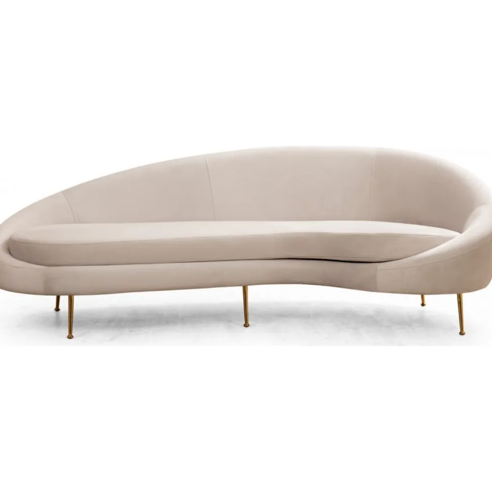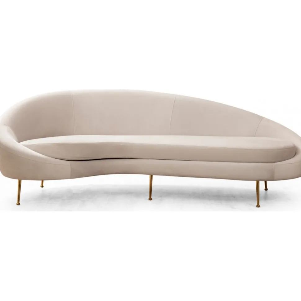 Soffa av bokträ med ben av metall och klädsel av polyester. Soffan har fasta sitt- och ryggdynor och ett tyg som går att kemtvätta. 2 st prydnadskuddar ingår.