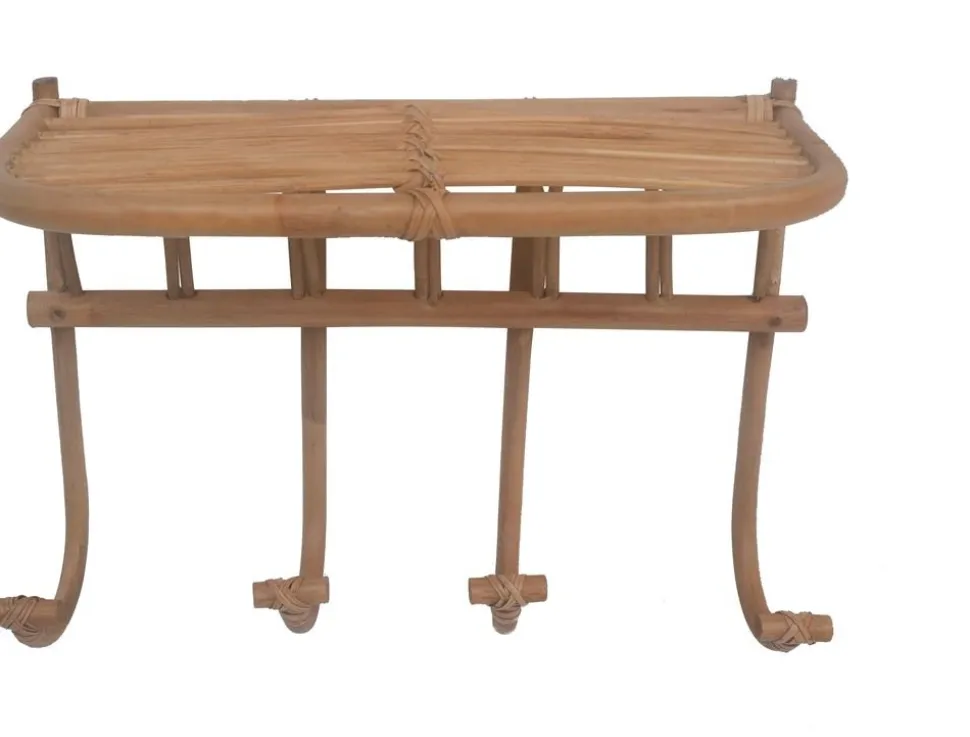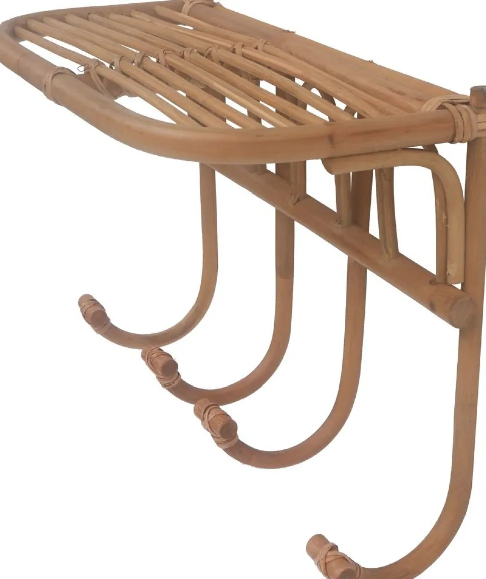 Modern och minimalistisk i slitstark och hållar naturfärgad rotting. Hatthyllan har 4 krokar samt ett hyllplan.